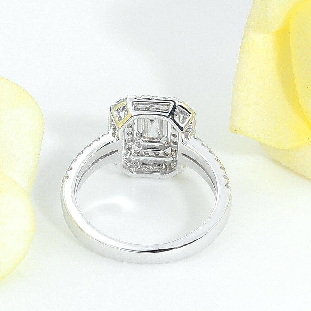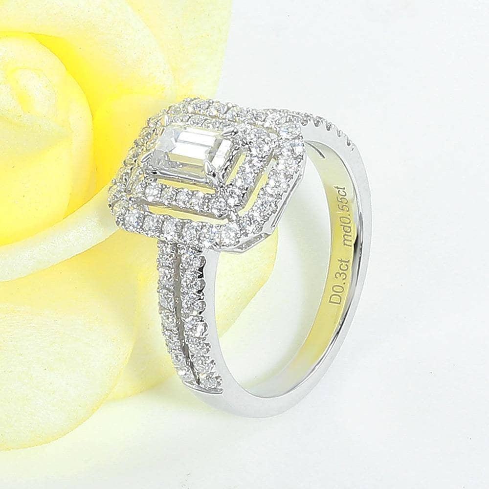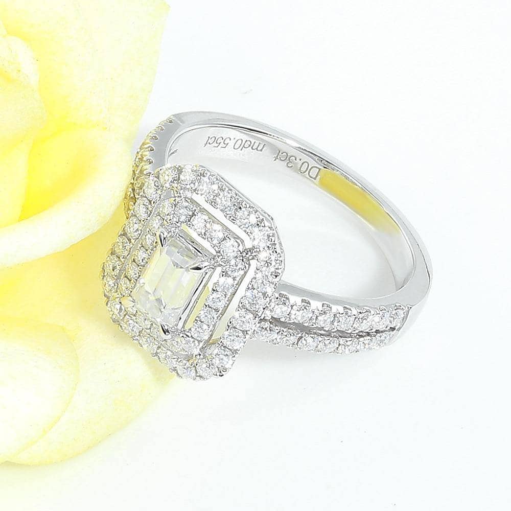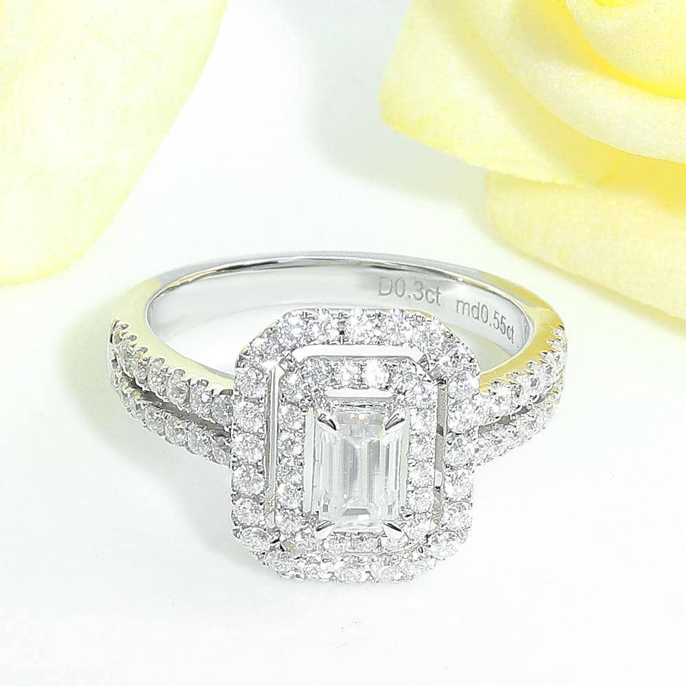 14k White Gold Emerald Cut Double Halo Diamond Engagement Ring