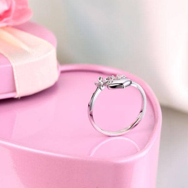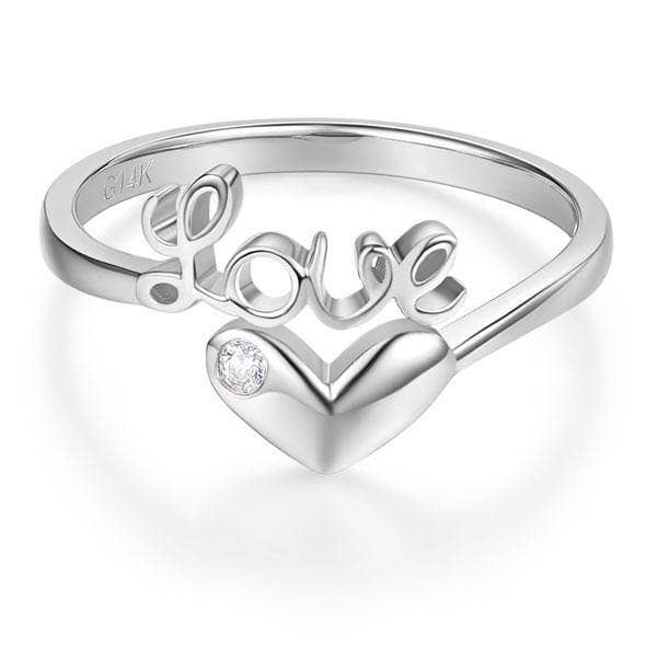 14k White Gold Love Heart Ring 0.01ct Natural Diamond