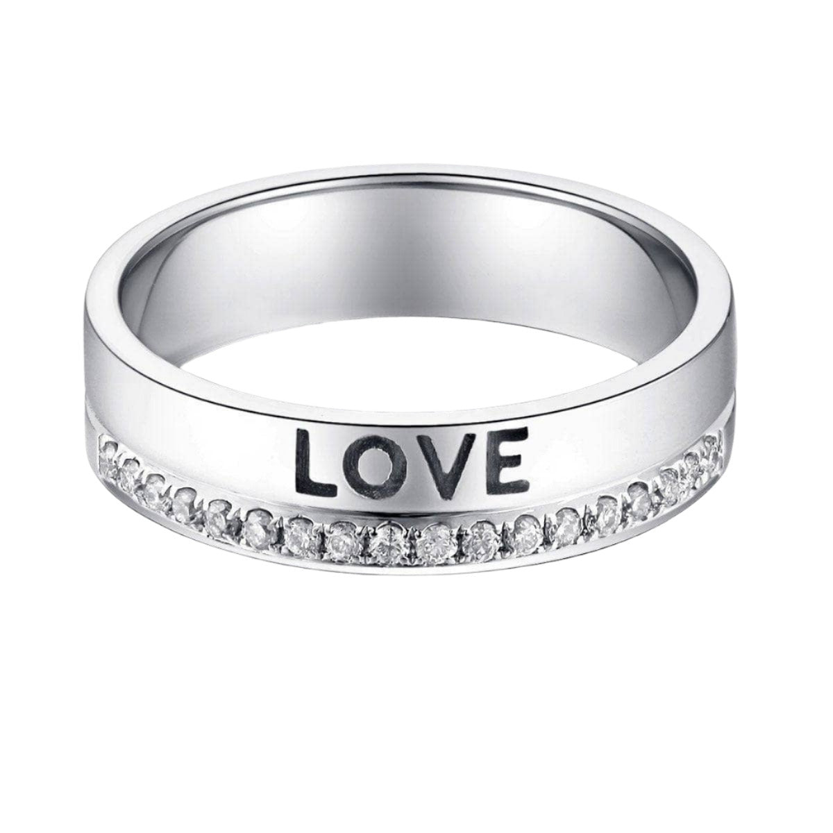 14k White Gold Love Wedding Band 0.12ct Natural Diamonds