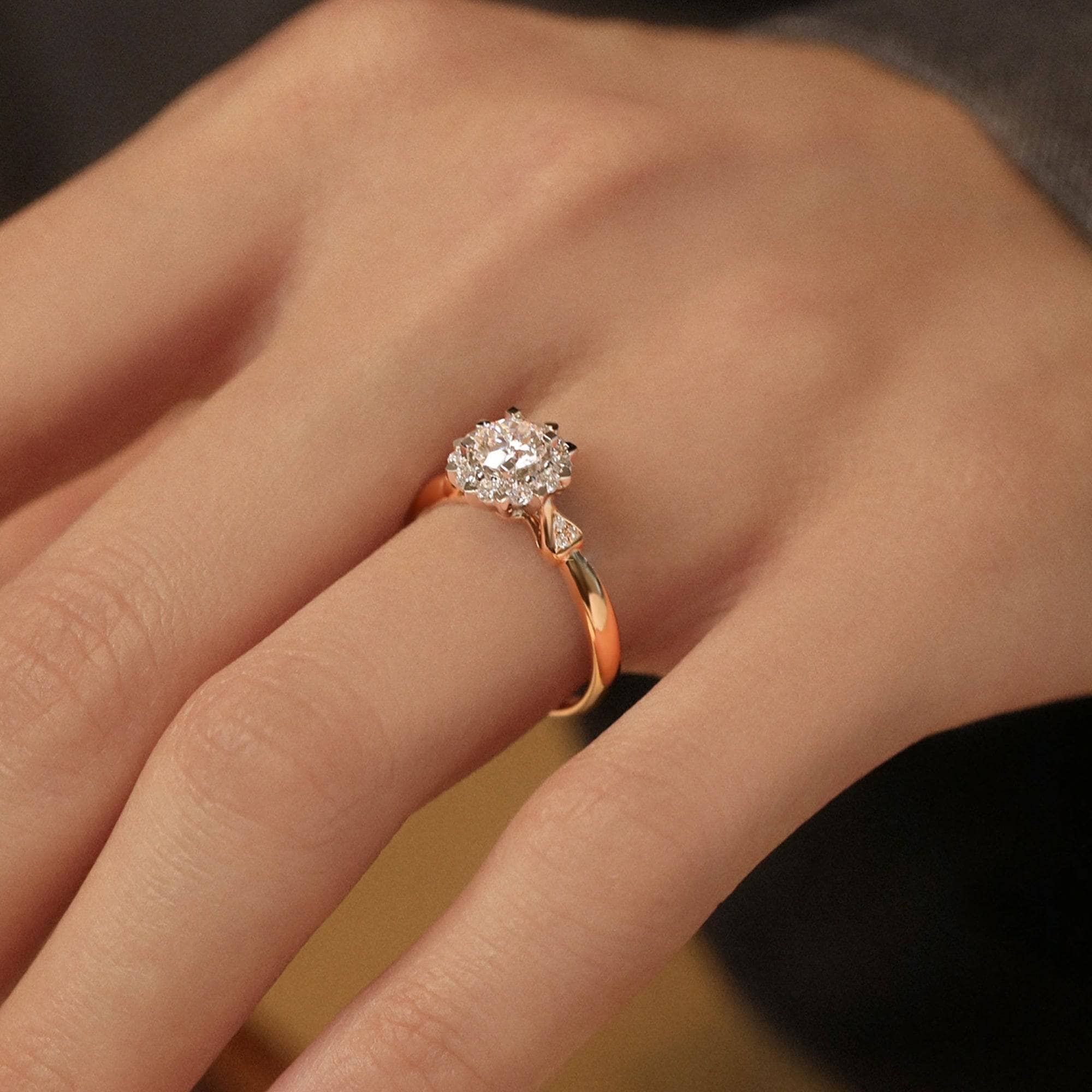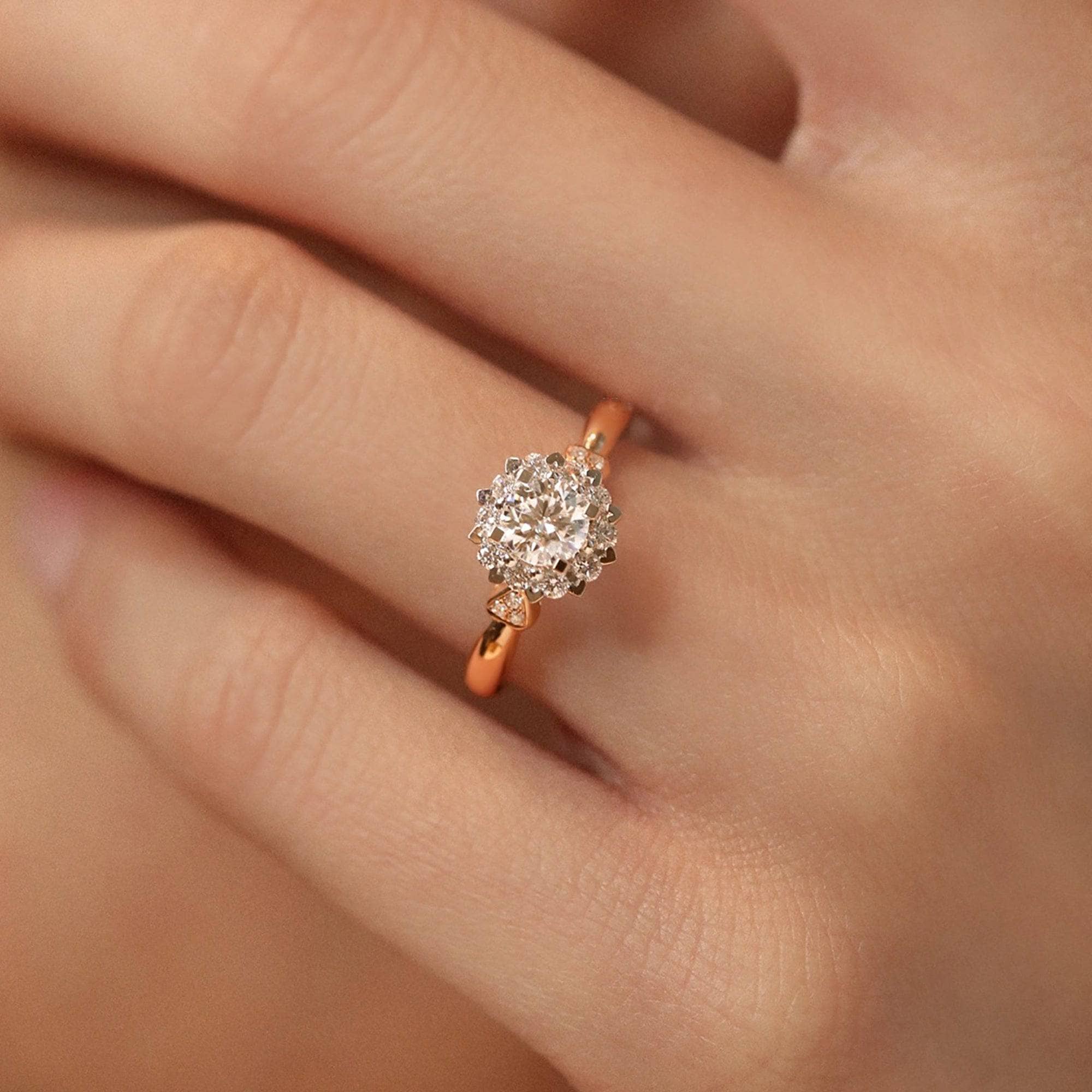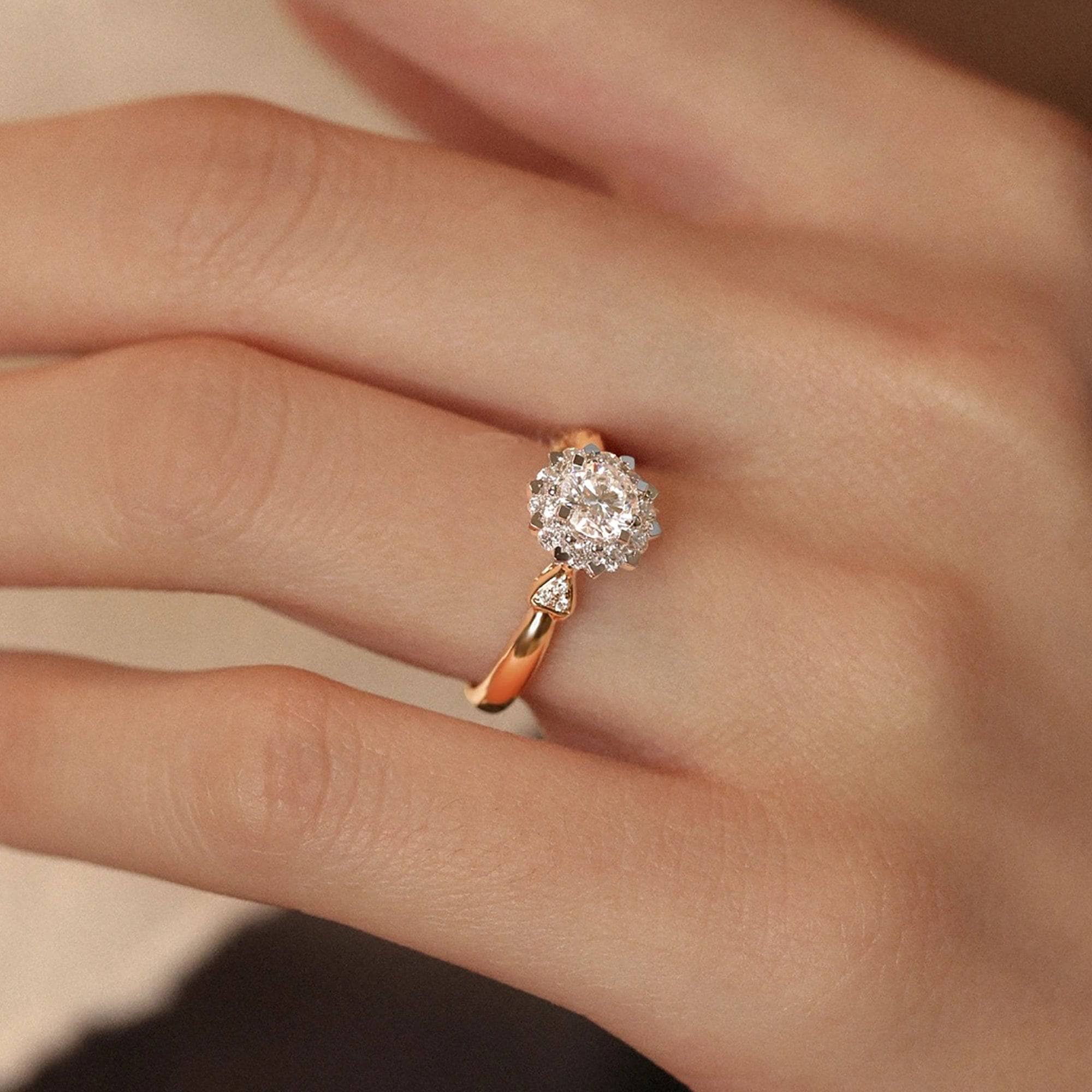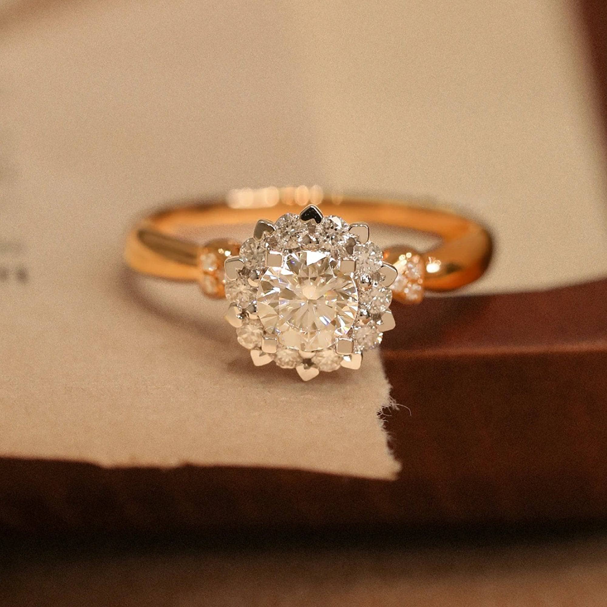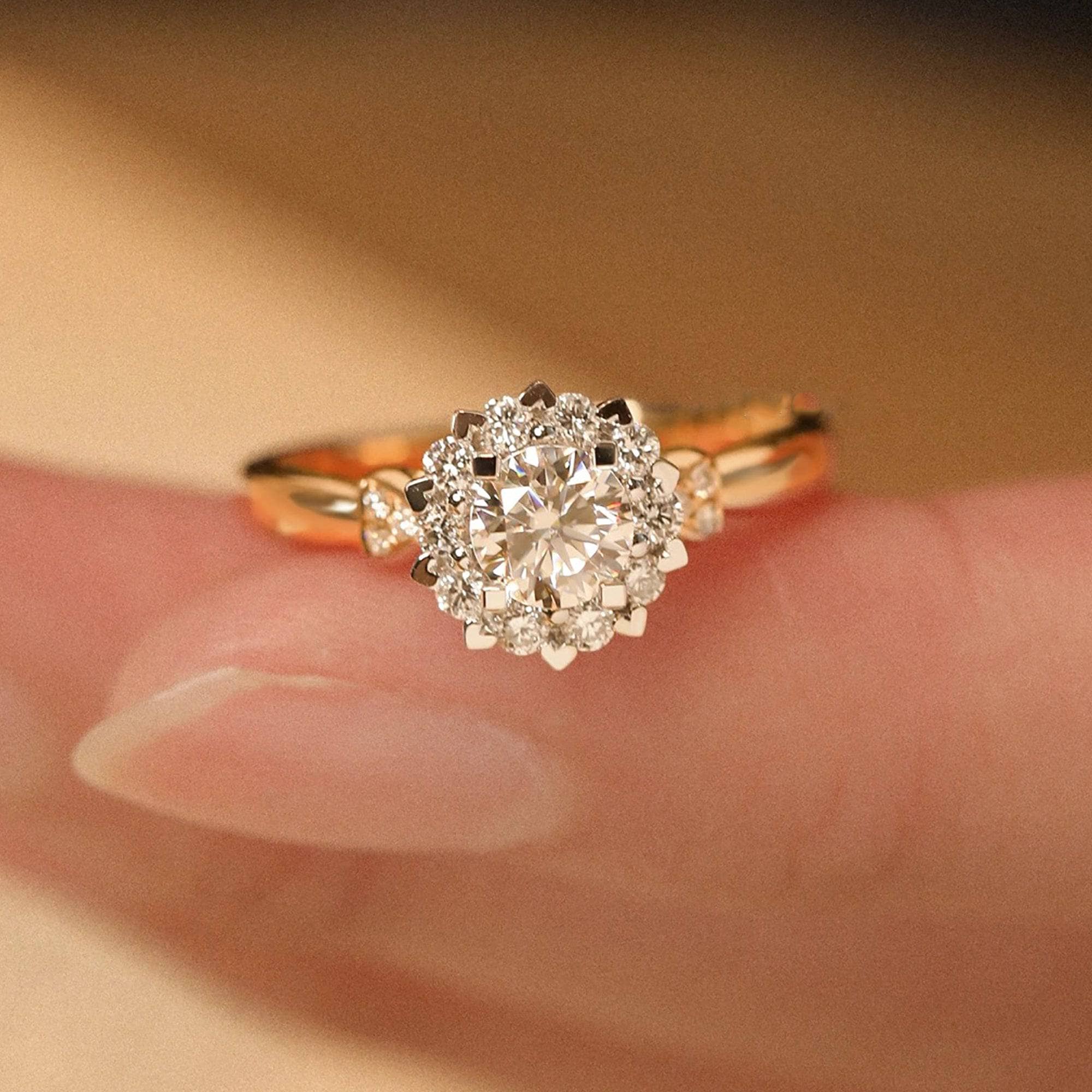 18k Art Deco Round Cut Certified Moissanite Halo Engagement Ring