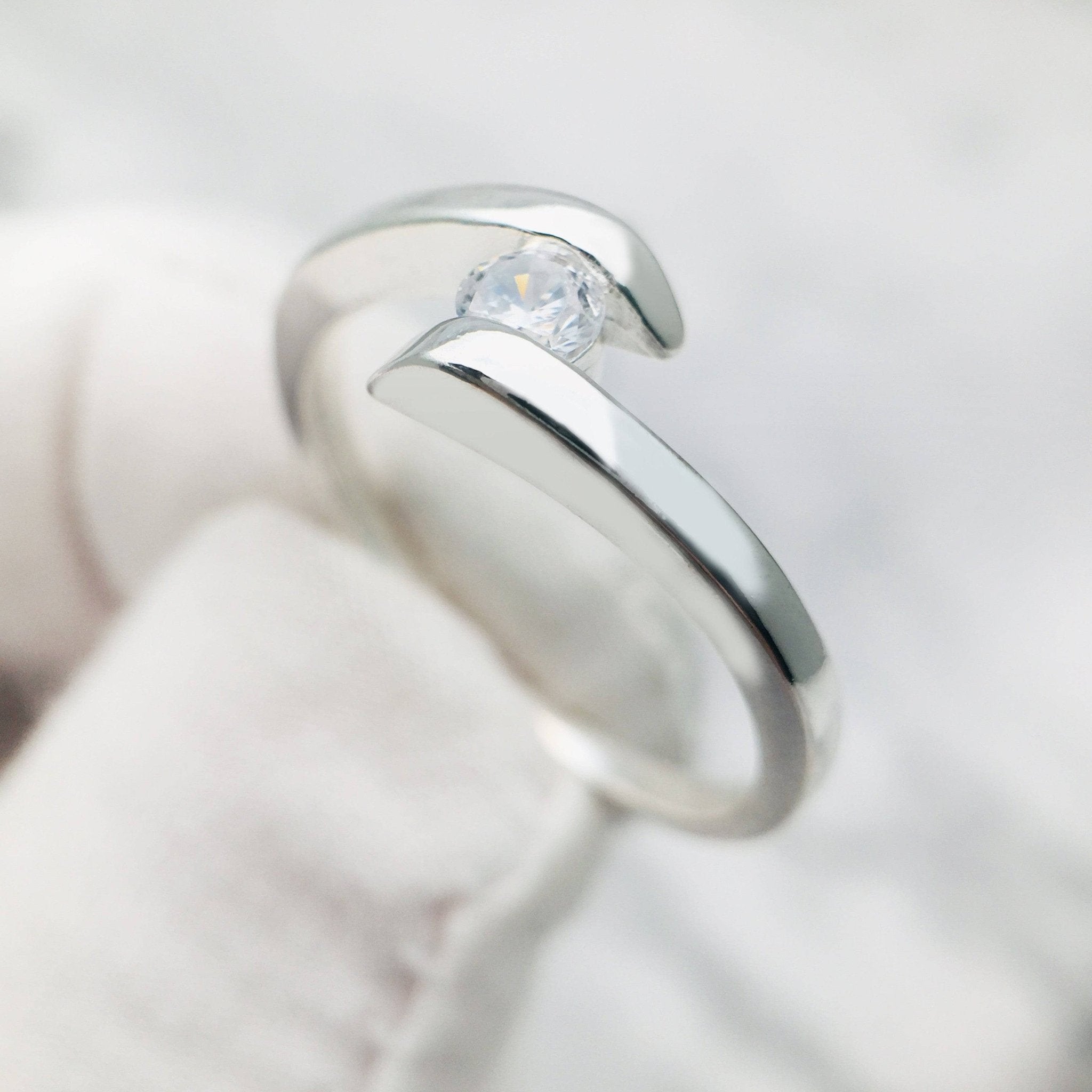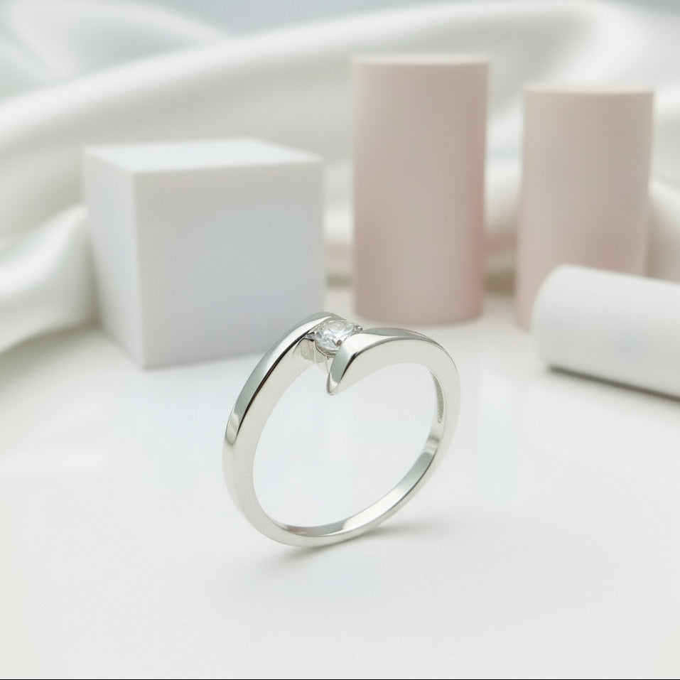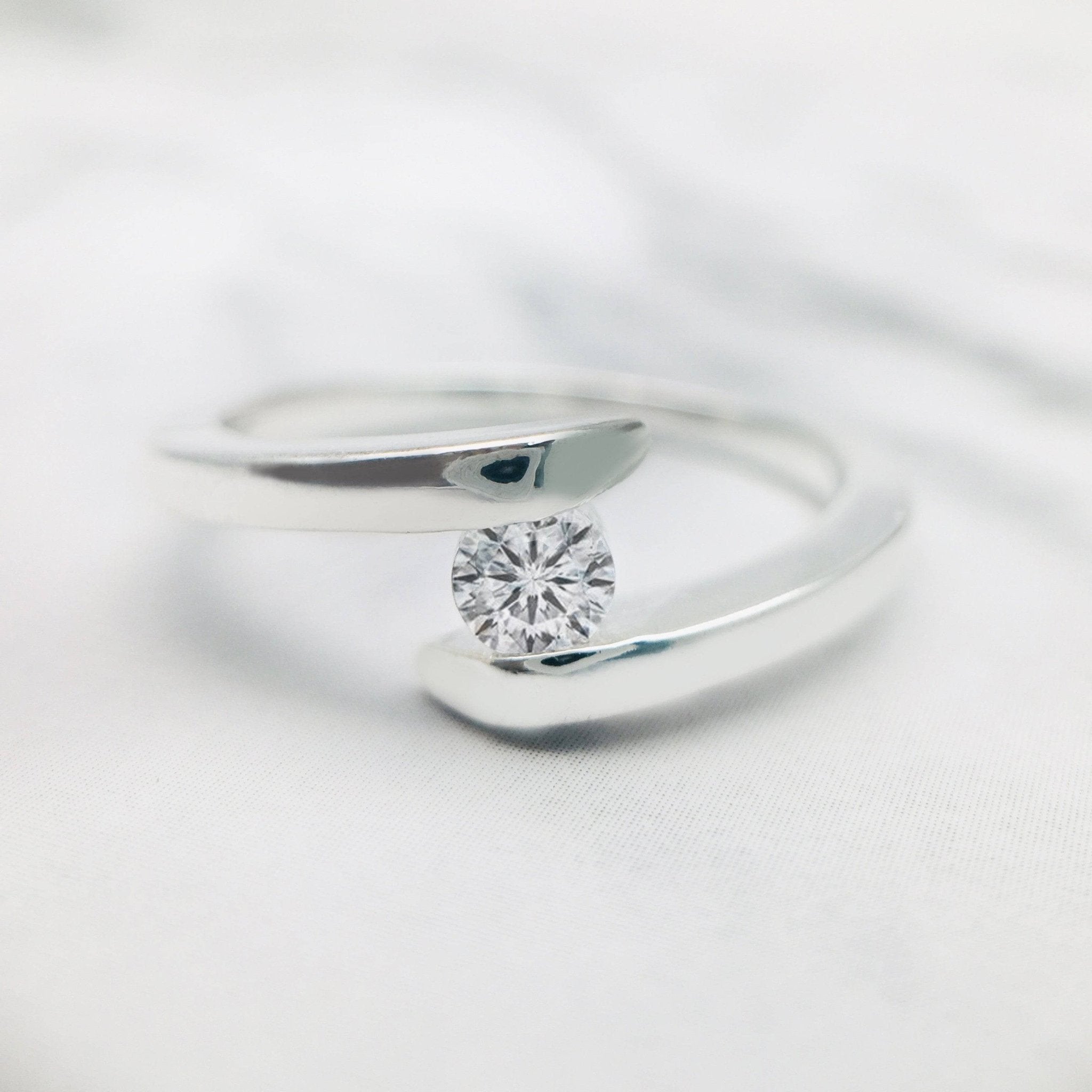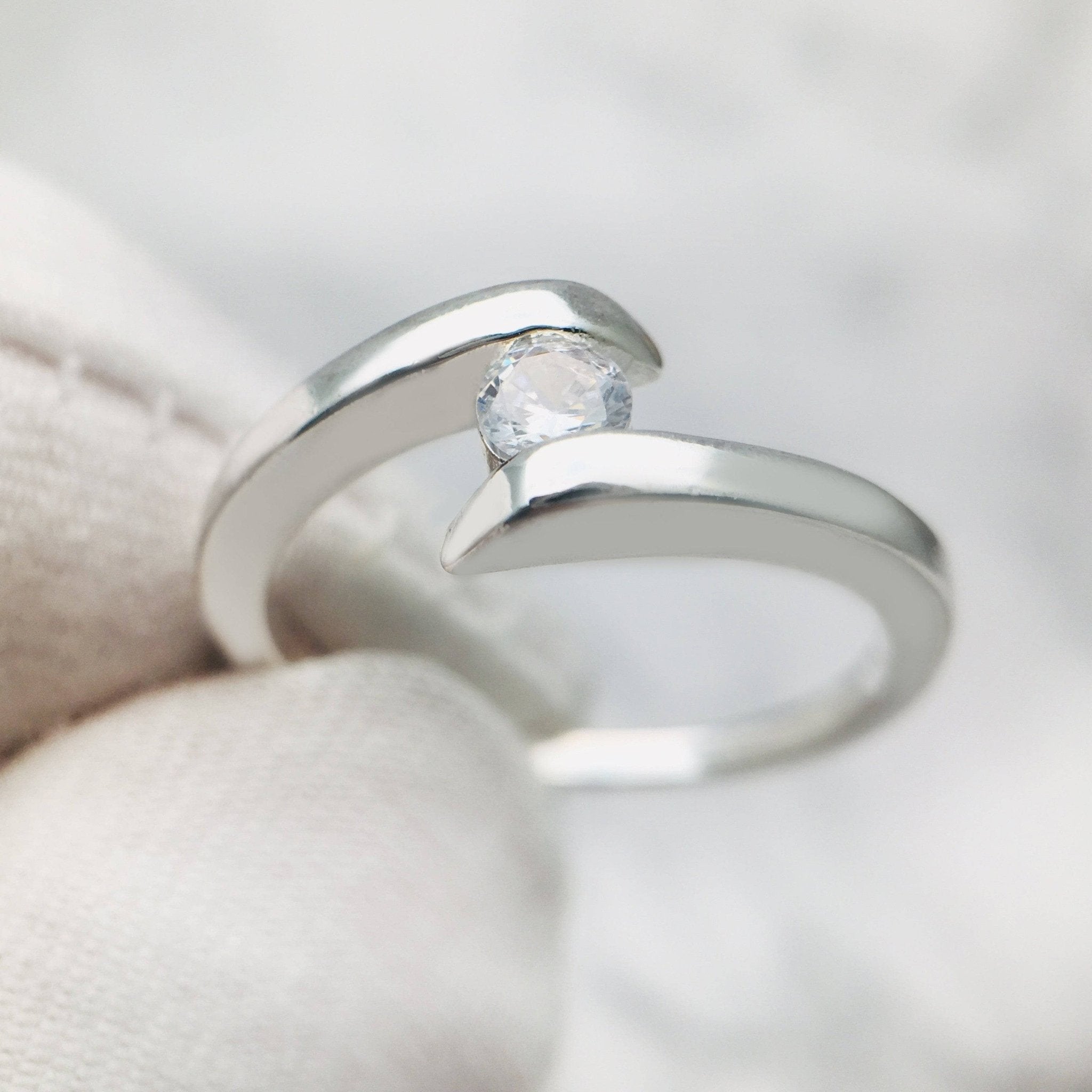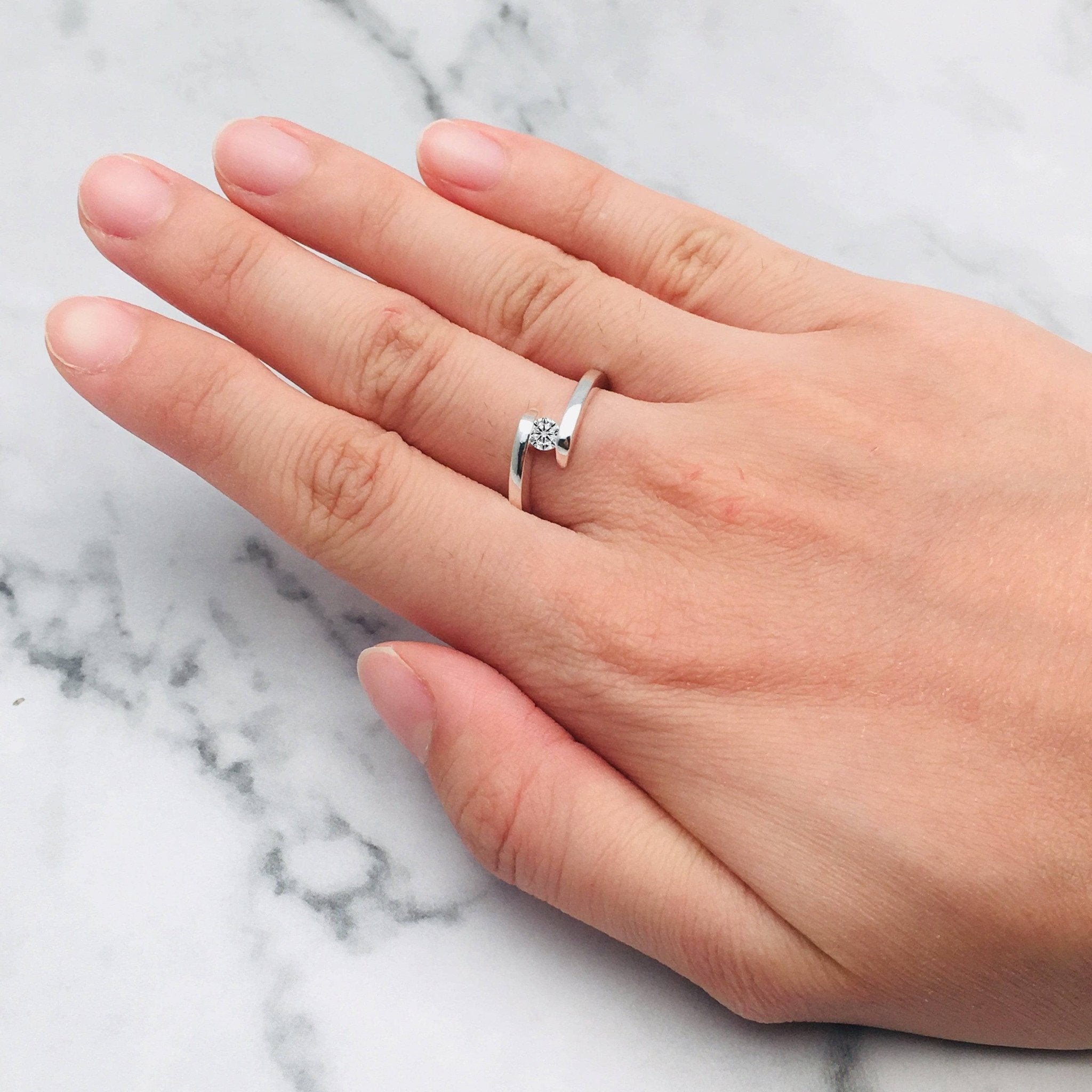 18k Round Cut Diamond Minimalist Design Engagement Ring