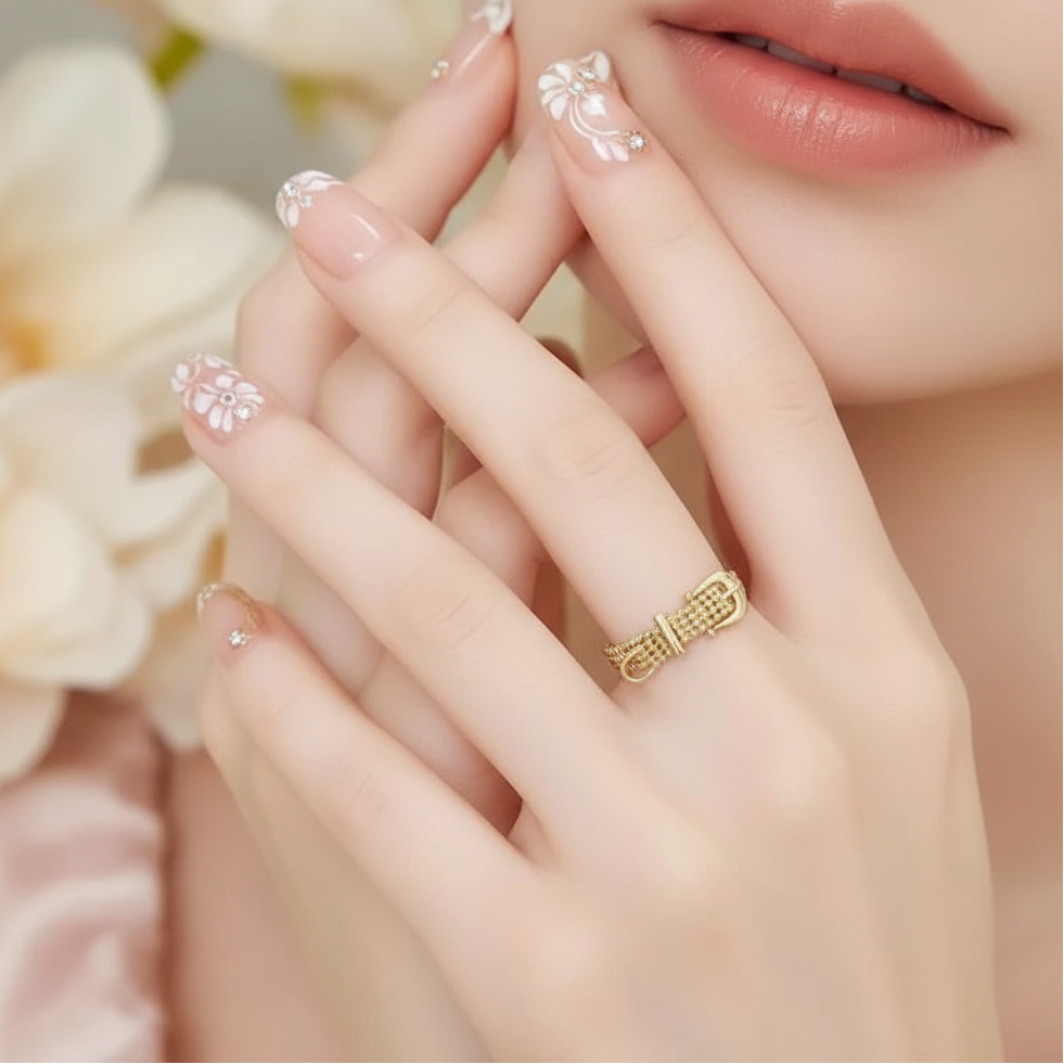 18k Yellow Gold Adjustable Retro Lace Design Ring