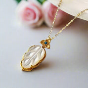 18k Yellow Gold Leaf Pendant Necklace With White Shell
