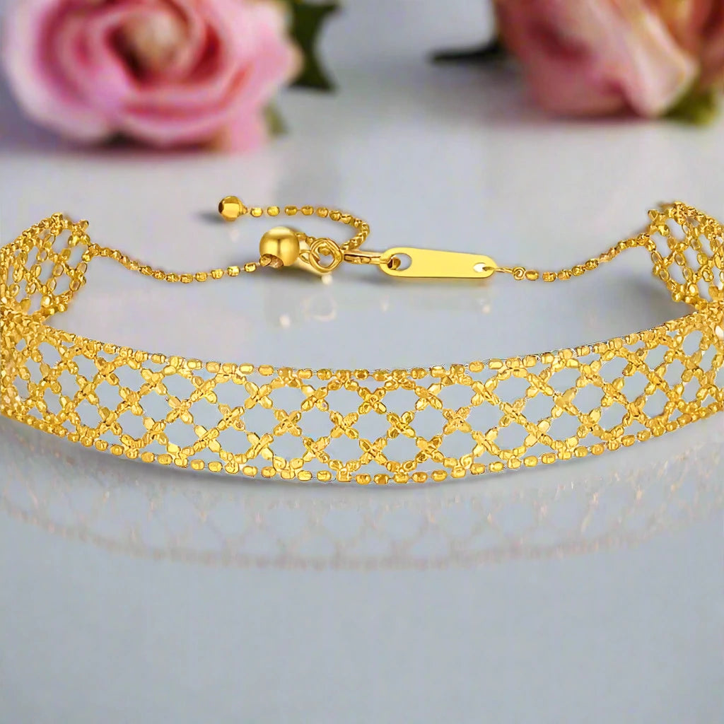 Unleash your inner glamour with the 18k Yellow Gold Vintage Lace Bracelet by Black Diamonds New York. This exquisite bracelet boasts a timeless lace design that is as stunning as it is elegant. Crafted with the utmost attention to detail and high-quality materials, this gorgeous piece exudes luxury at an affordable price point. Elevate your style with a touch of vintage flair that will leave a lasting impression.