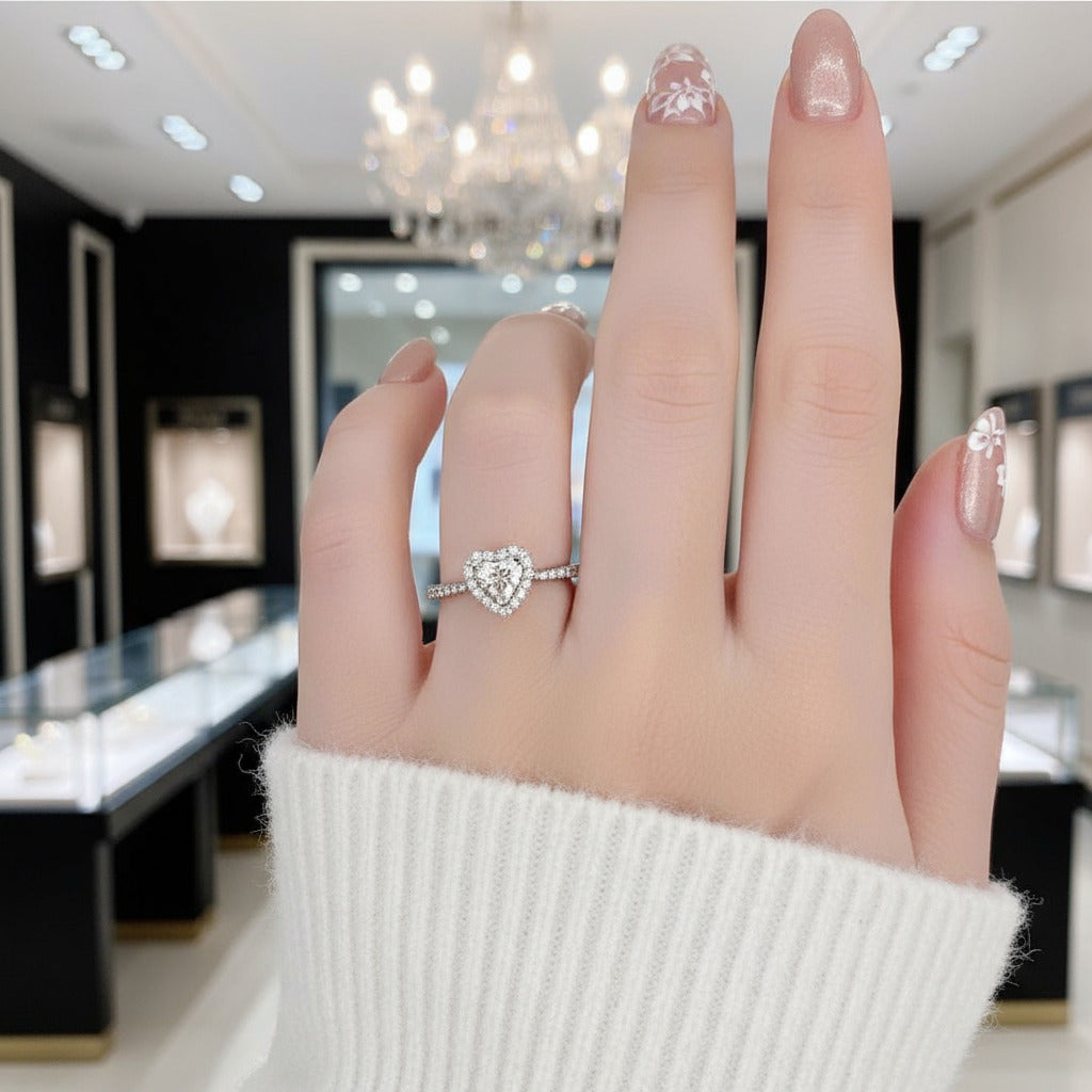 2.0 Ct Double Heart-shaped Diamond Halo Face Ring