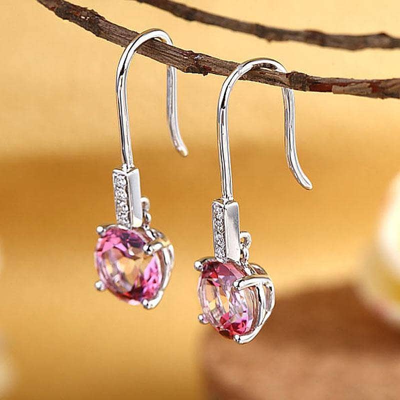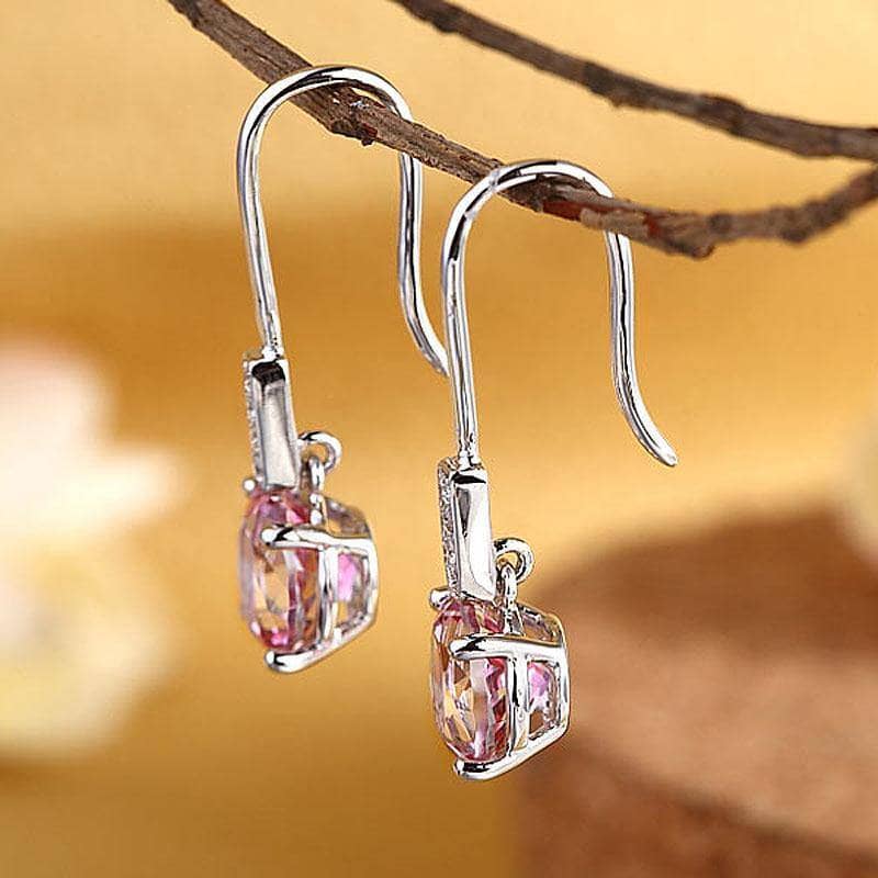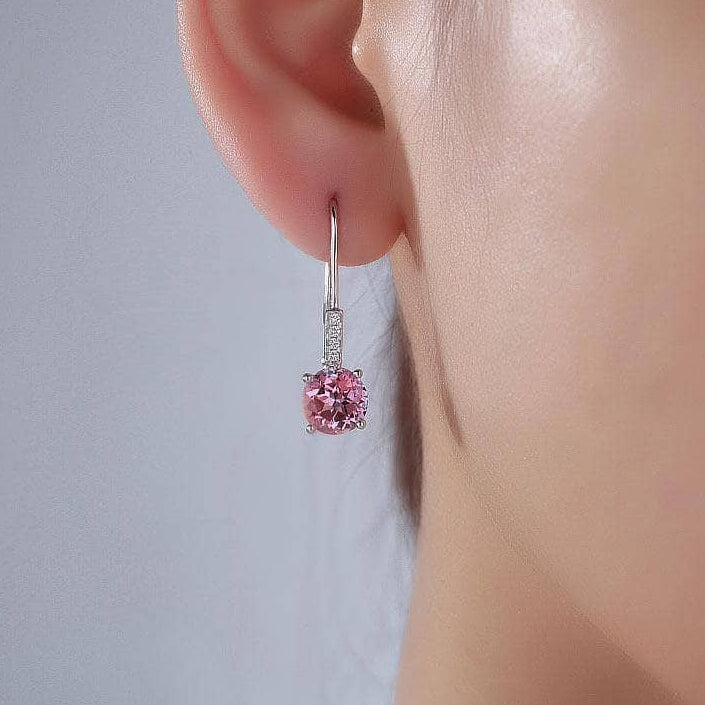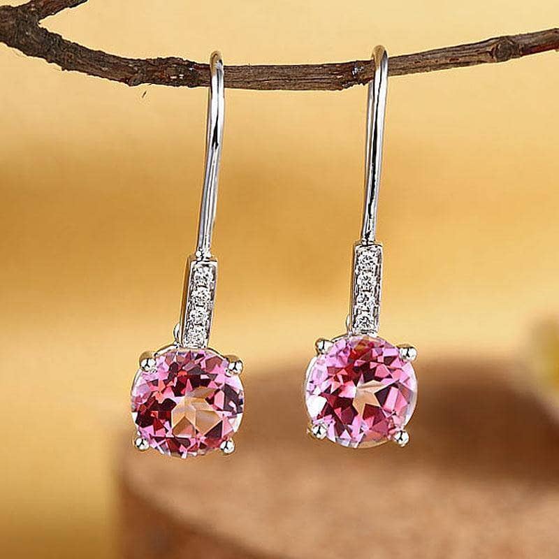 2.5ct Natural Pink Topaz 14k White Gold Dangle Earrings