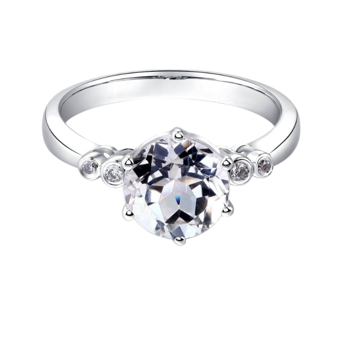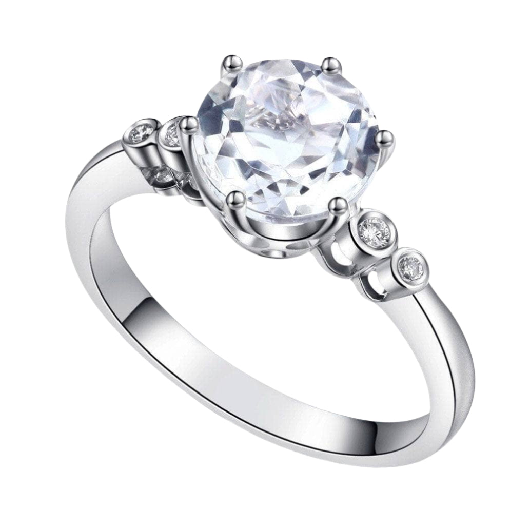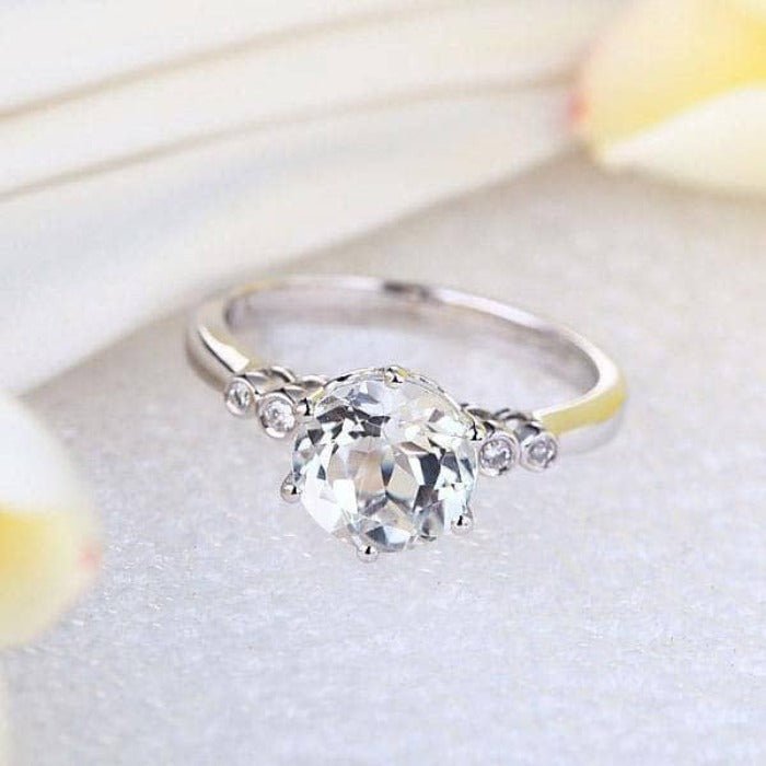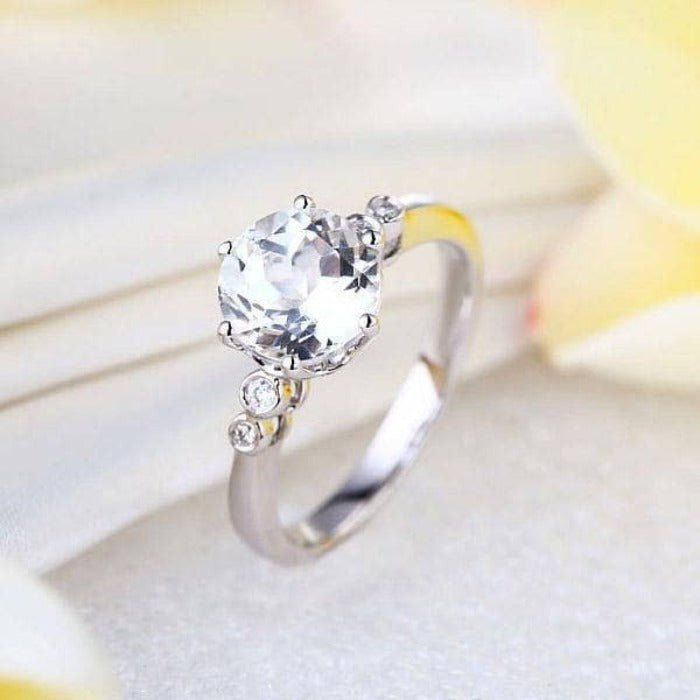 Make your perfect moment extra special with this gorgeous 14k white gold engagement ring. Boasting a 2ct round-cut Topaz and 0.038ct VS1 clarity natural diamond, this absolutely stunning piece will bring out the inner sparkle of your true love. With its high-quality craftsmanship and affordable price tag, it's sure to make the moment even more memorable.
