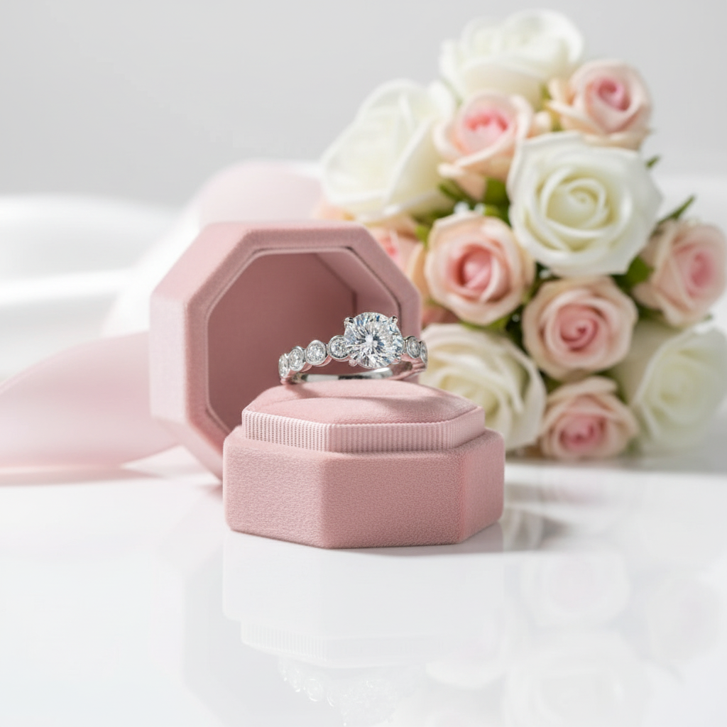 Ethically sourced and visually stunning, our certified moissanite gemstones are remarkably similar to natural diamonds, so much so that even jewelers have difficulty distinguishing them. Perfect for daily wear.