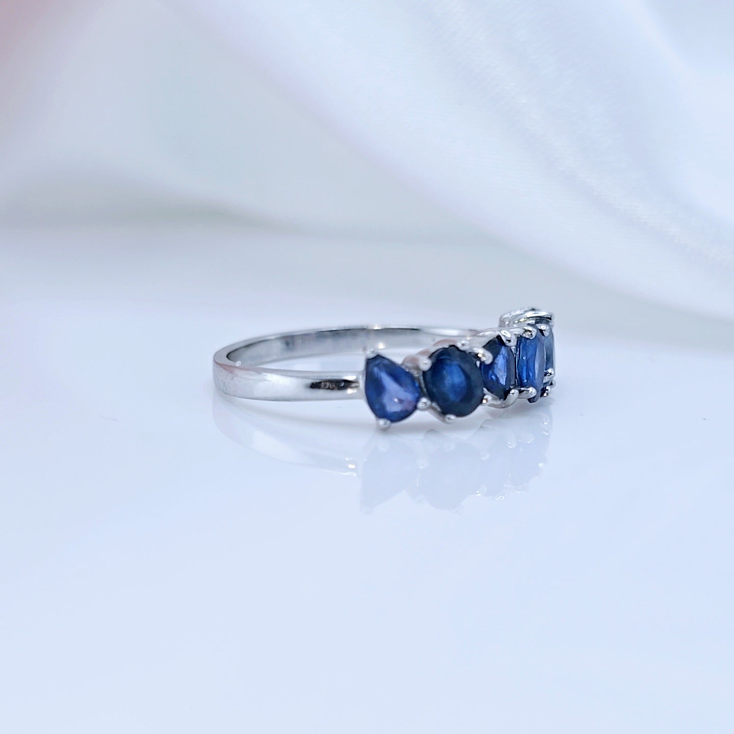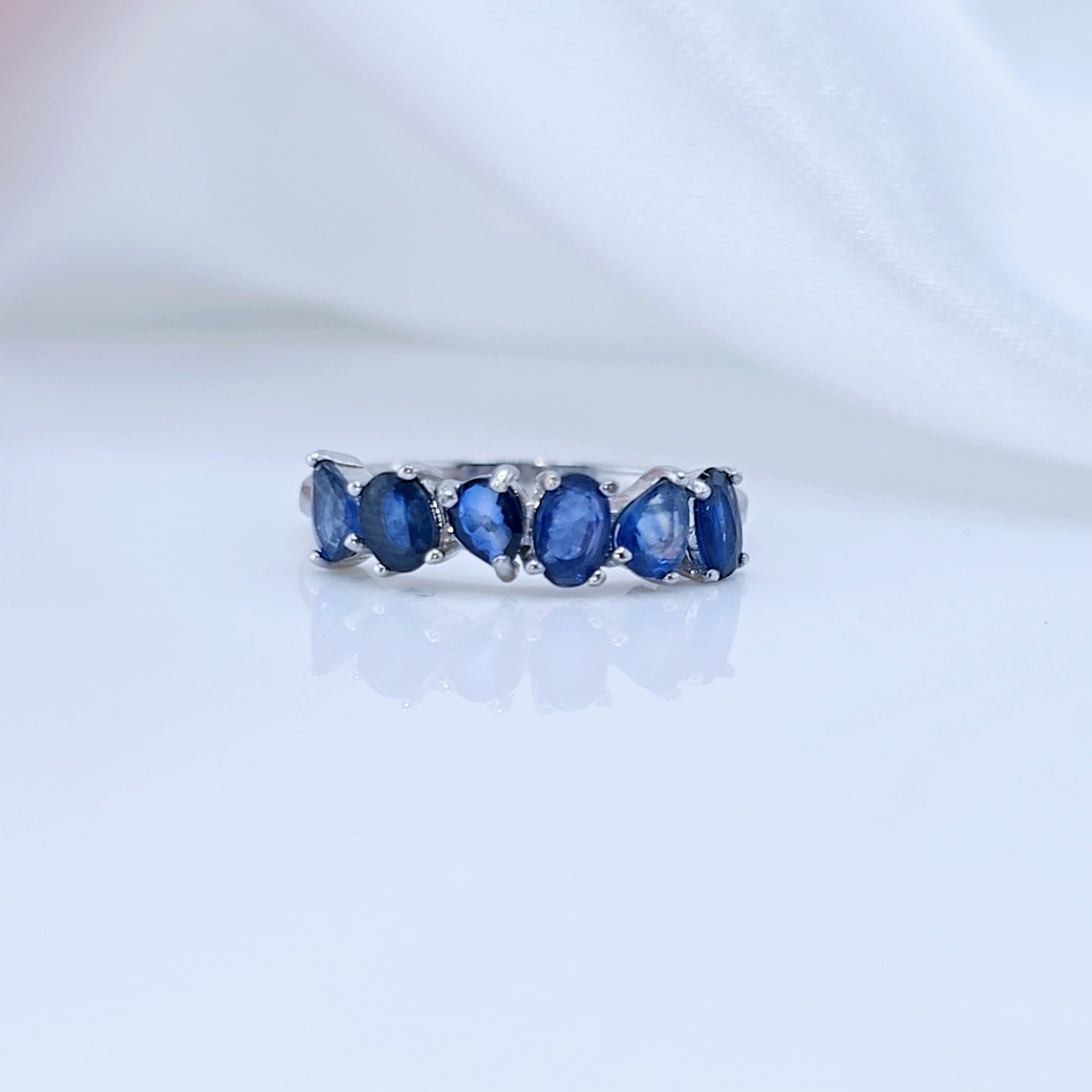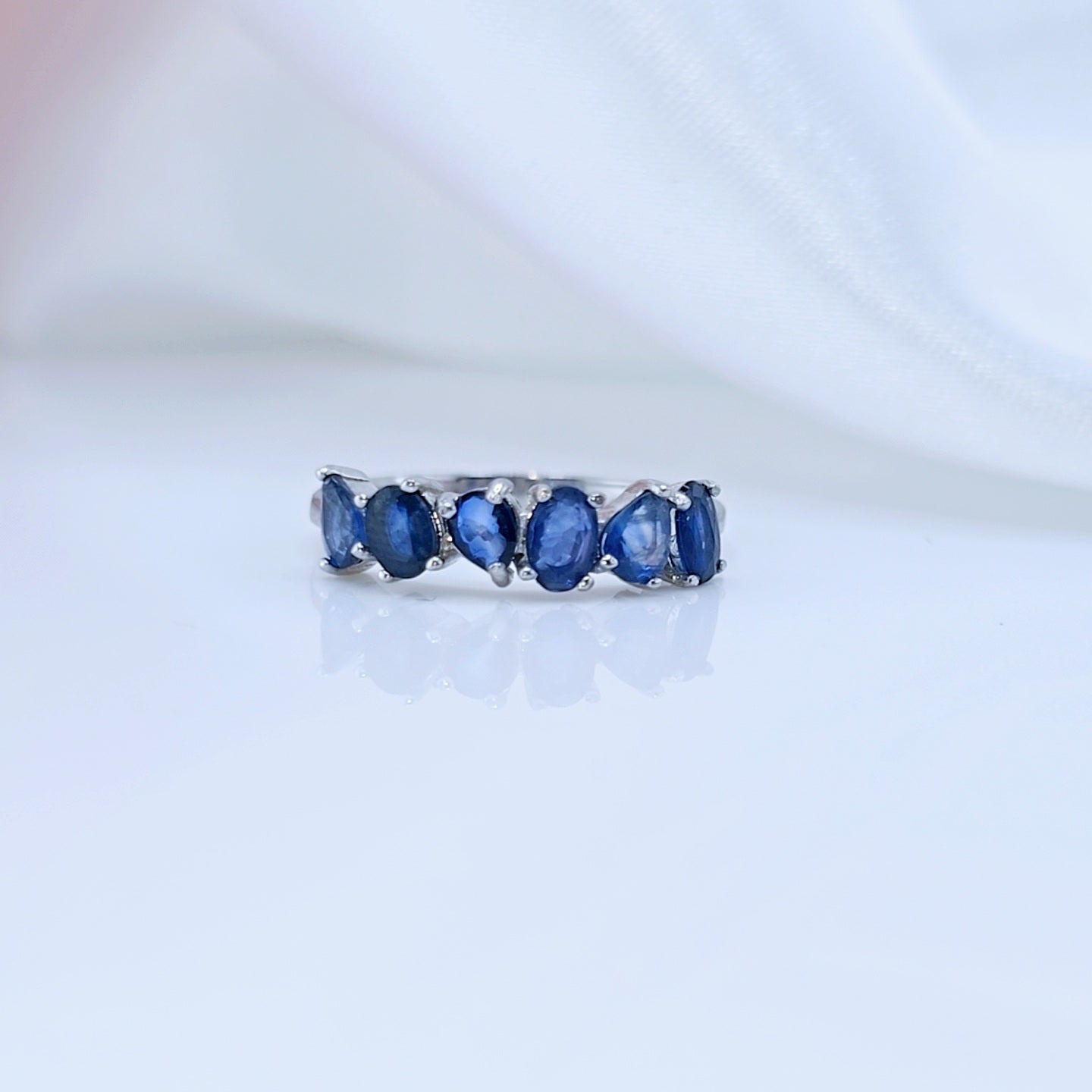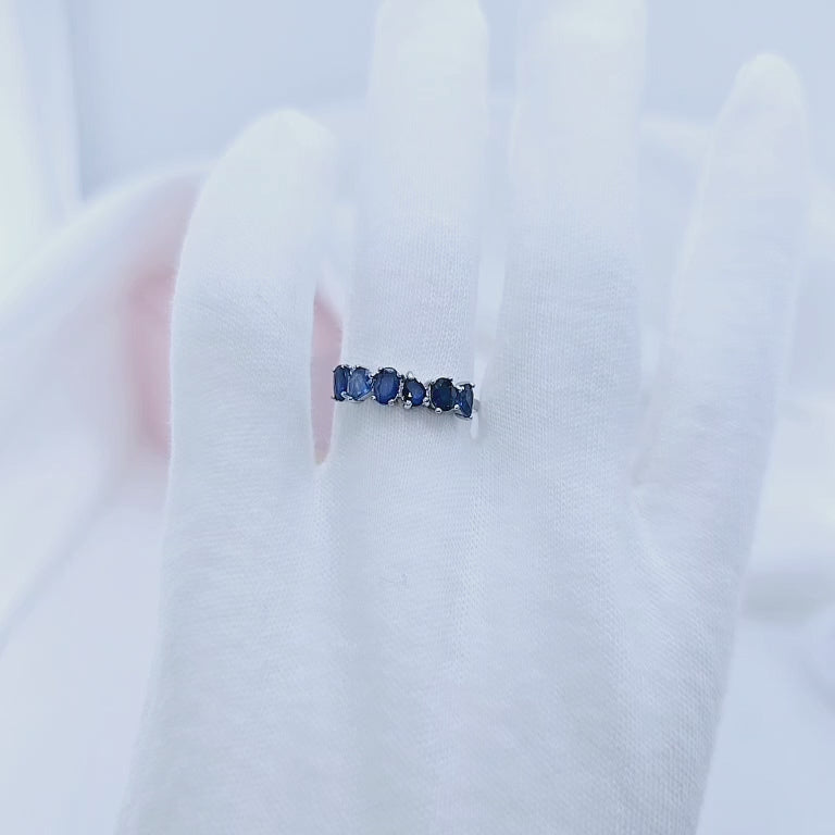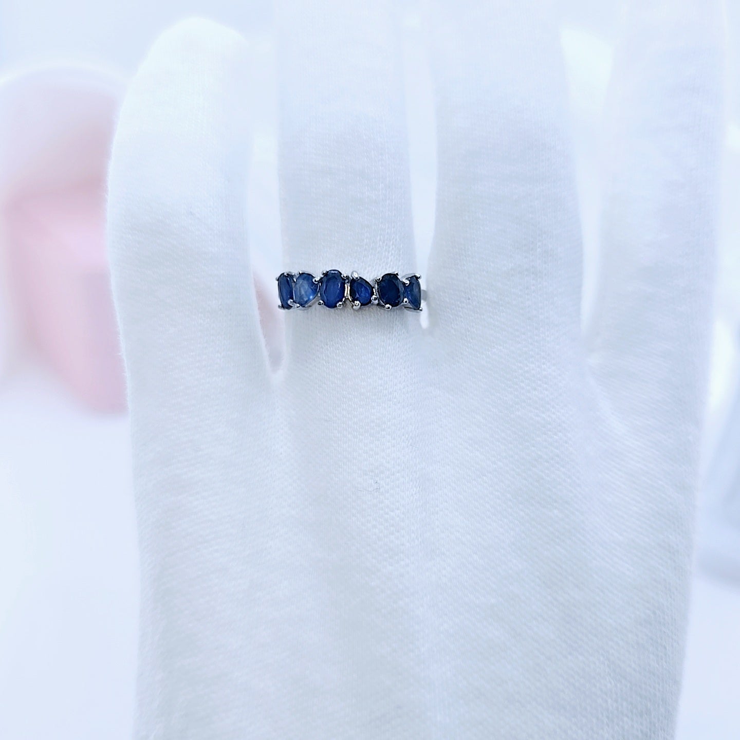 This exquisitely handcrafted 3*4mm Blue Sapphire Wedding Band by Black Diamonds – New York is the perfect way to express your lasting love. Meticulously constructed from ethically sourced fine materials and 6 shimmering sapphires, it exudes sophistication with its timeless yellow gold design. This piece will be a treasured keepsake, made to last a lifetime. Show your commitment with this exquisite piece of luxury jewelry.
