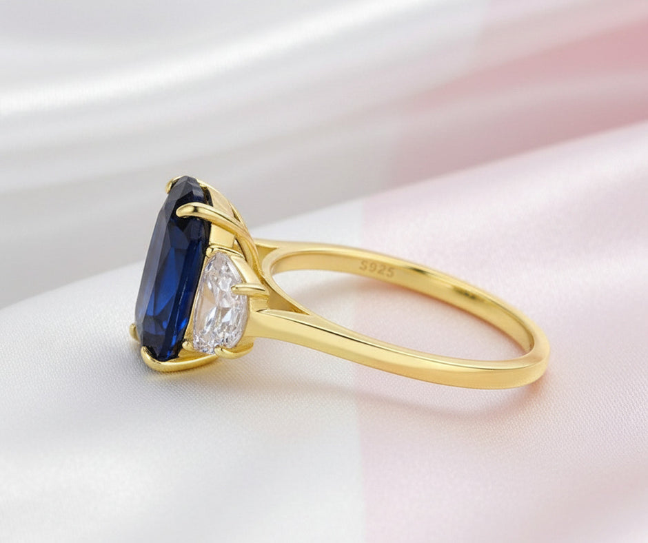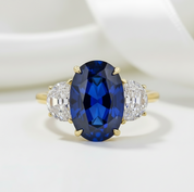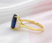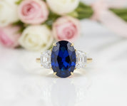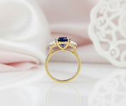 3.5ct Three Stone Blue Sapphire Oval Cut Yellow Gold Engagement Ring