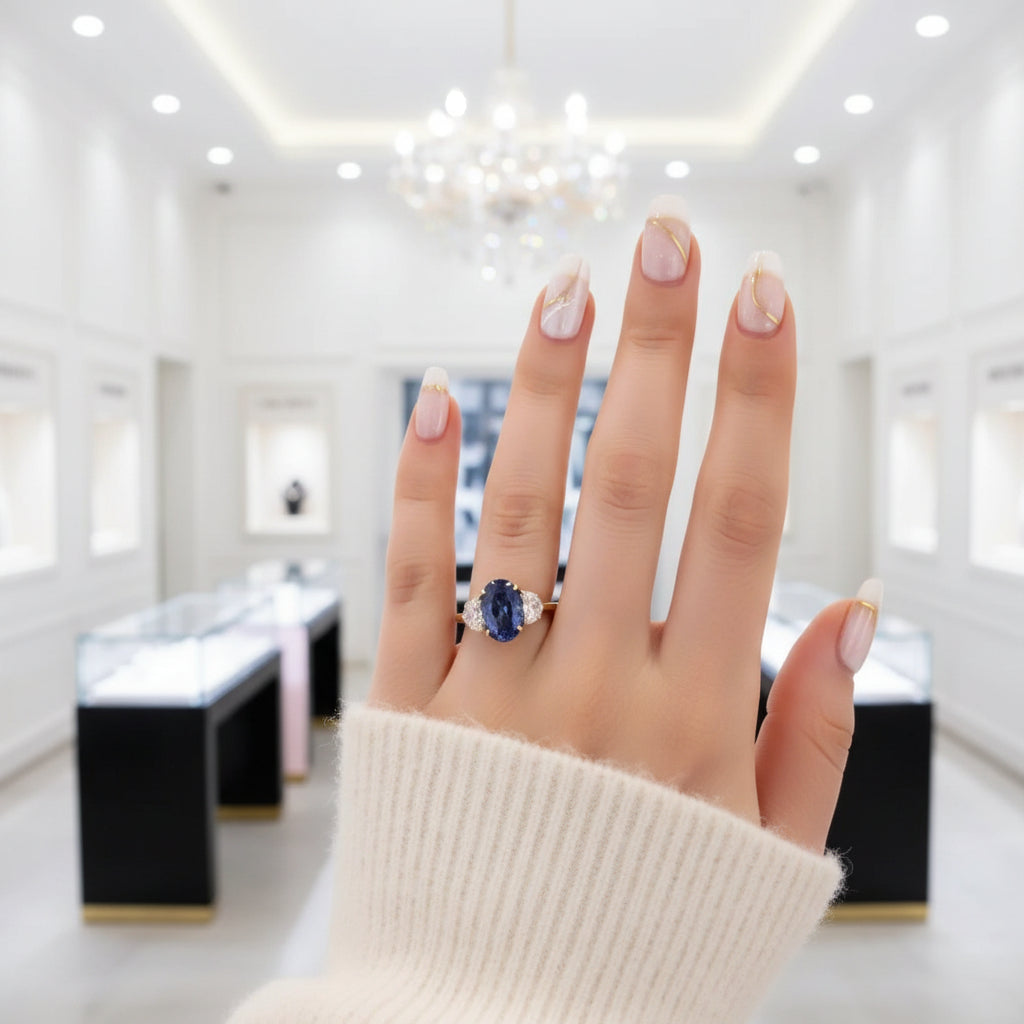 Stone Comparison: More like a high-quality zirconium and sapphire, but with superior brilliance.