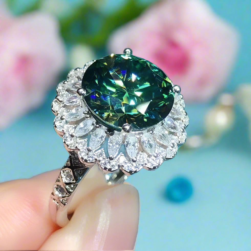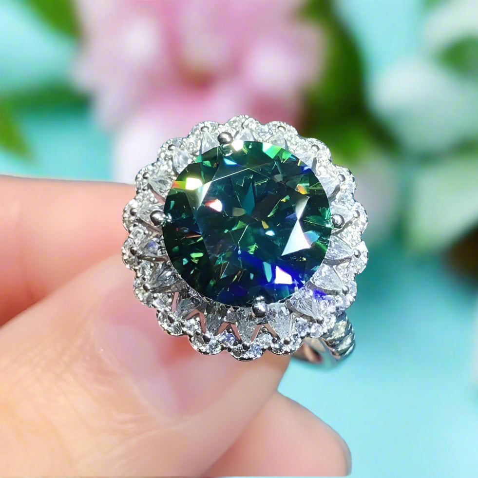 6 Carat Round Cut Green Diamond Halo Engagement Ring