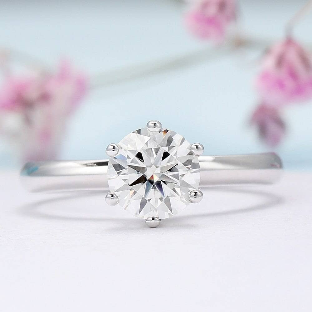 6 Prong 1.0 Ct Round Cut Diamond Engagement Ring