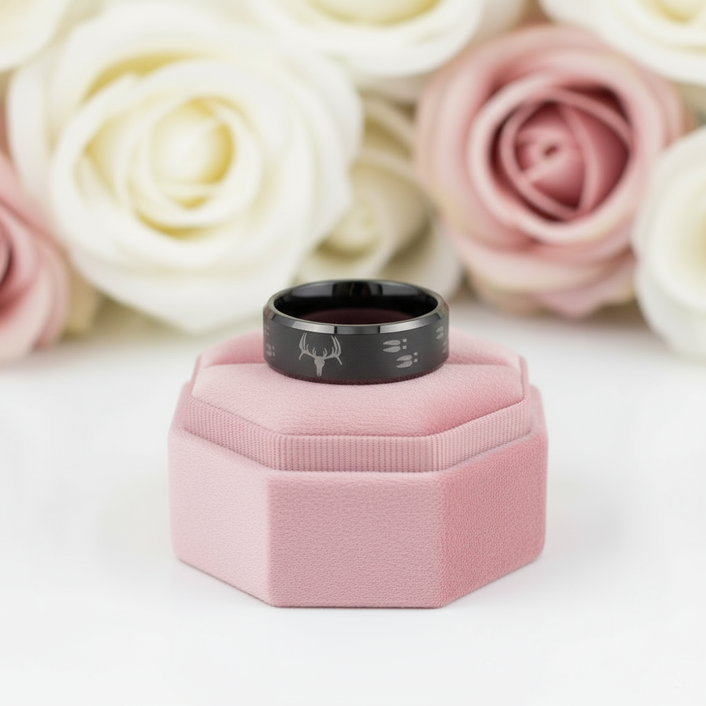 8mm Tungsten Carbide Wedding Band with Engraved Deer
