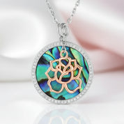 Abalone Shell Pendant Necklace with Rose Gold Flower