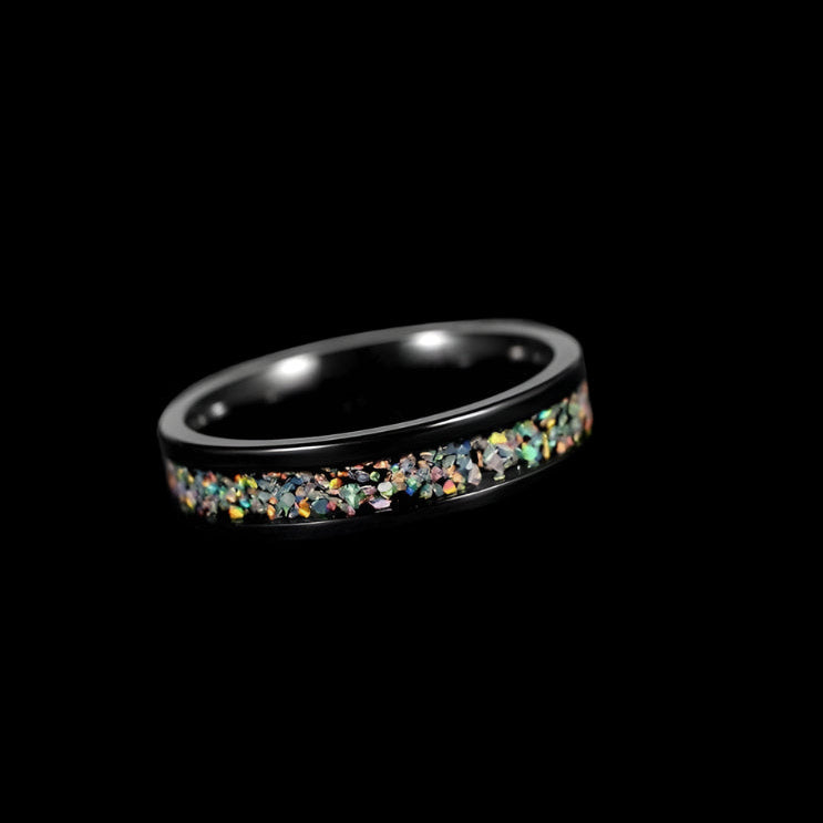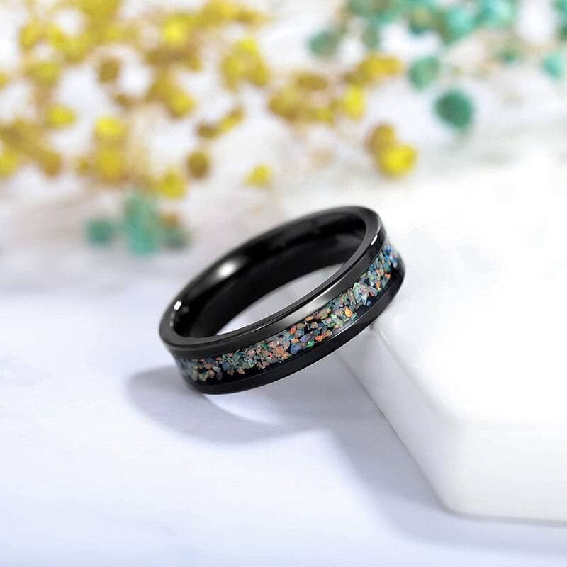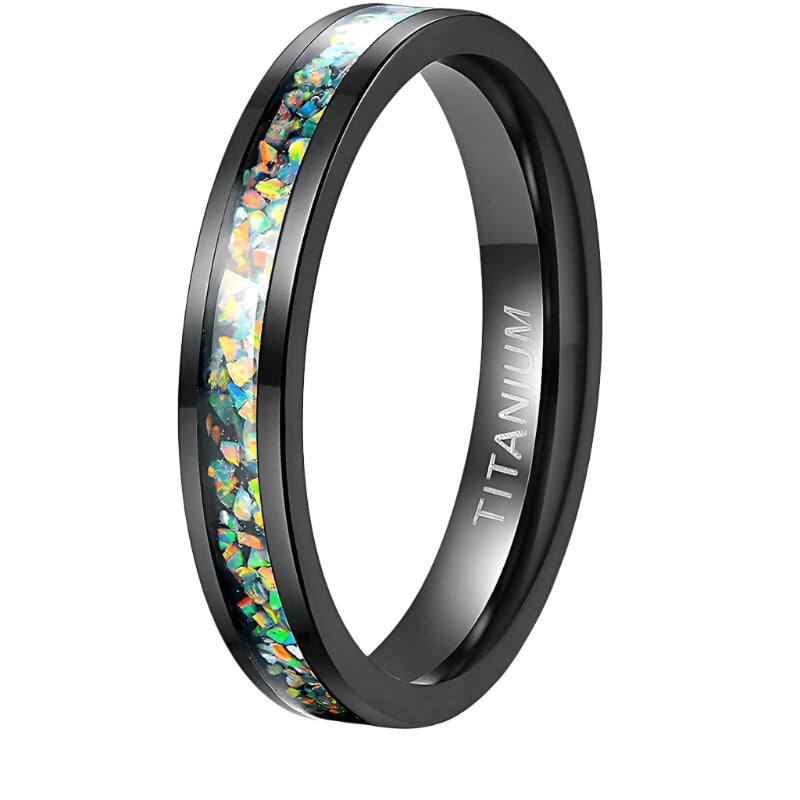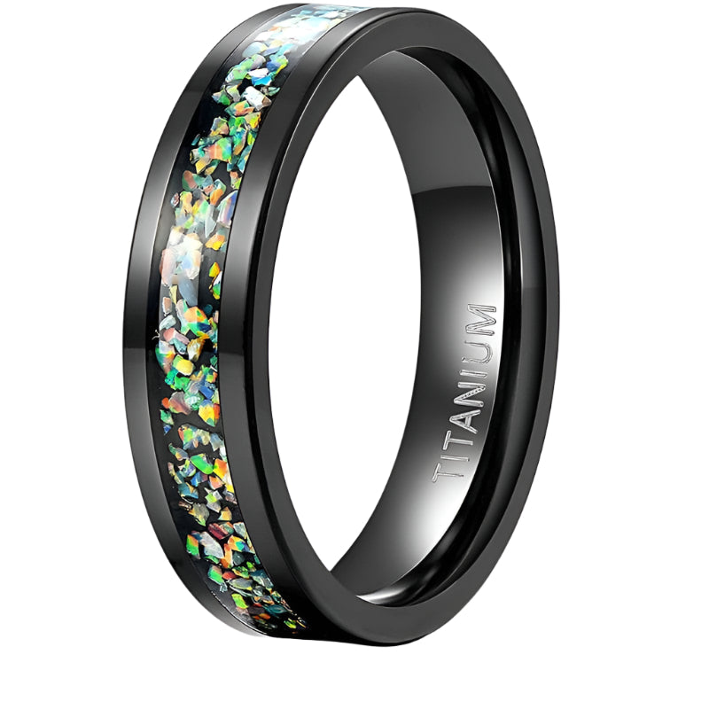 Black Men's Titanium Wedding Band with Opal Inlay