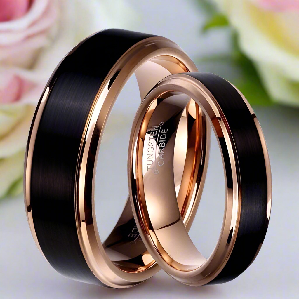 Black & Rose Gold Color Tungsten Carbide Couple Wedding Band