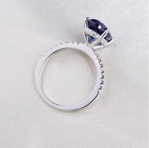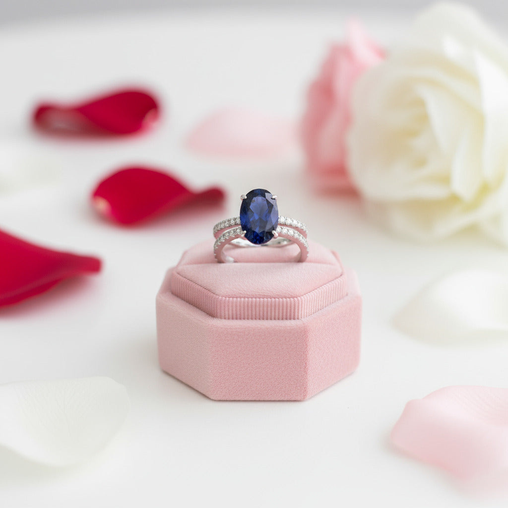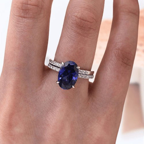 Classic Blue Sapphire Oval Cut Engagement Ring Set