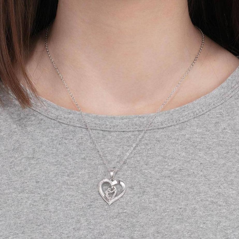 The Custom Mother Baby Pendant Necklace by Black Diamonds New York is a stunning piece that can be personalized with your names. Featuring a heart pendant with a round Diamond Alternative, this gorgeous necklace is of high quality and affordable. Treat yourself or a loved one to this enthralling piece today!