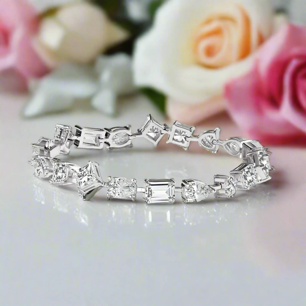 Make a statement with our Elegant 1.0 Ct Certified Moissanite Diamond Bracelet by Black Diamonds New York. Crafted with a 1 carat moissanite stone in a variety of shapes, this bracelet exudes luxury and class. The stunning design, paired with high-quality 925 silver dipped 5 times in 18k gold, creates a sparkly and gorgeous accessory that is both affordable and of superior quality.