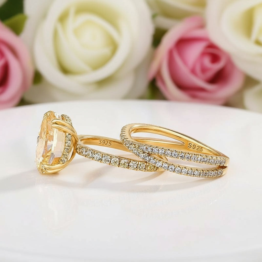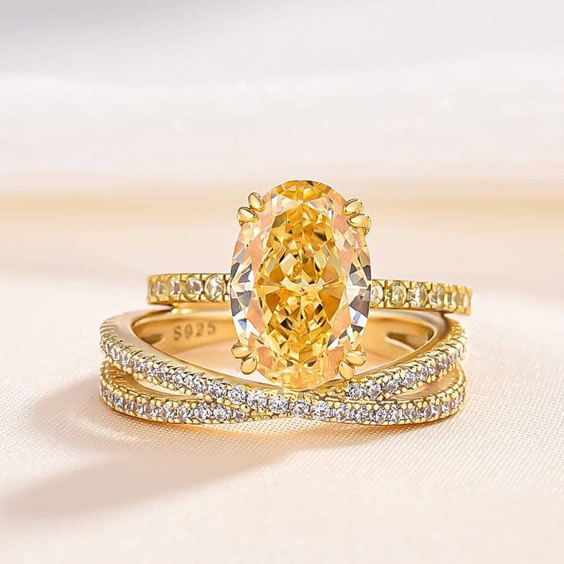 Exquisite Yellow Gold Oval Cut Yellow Sapphire Ring Set