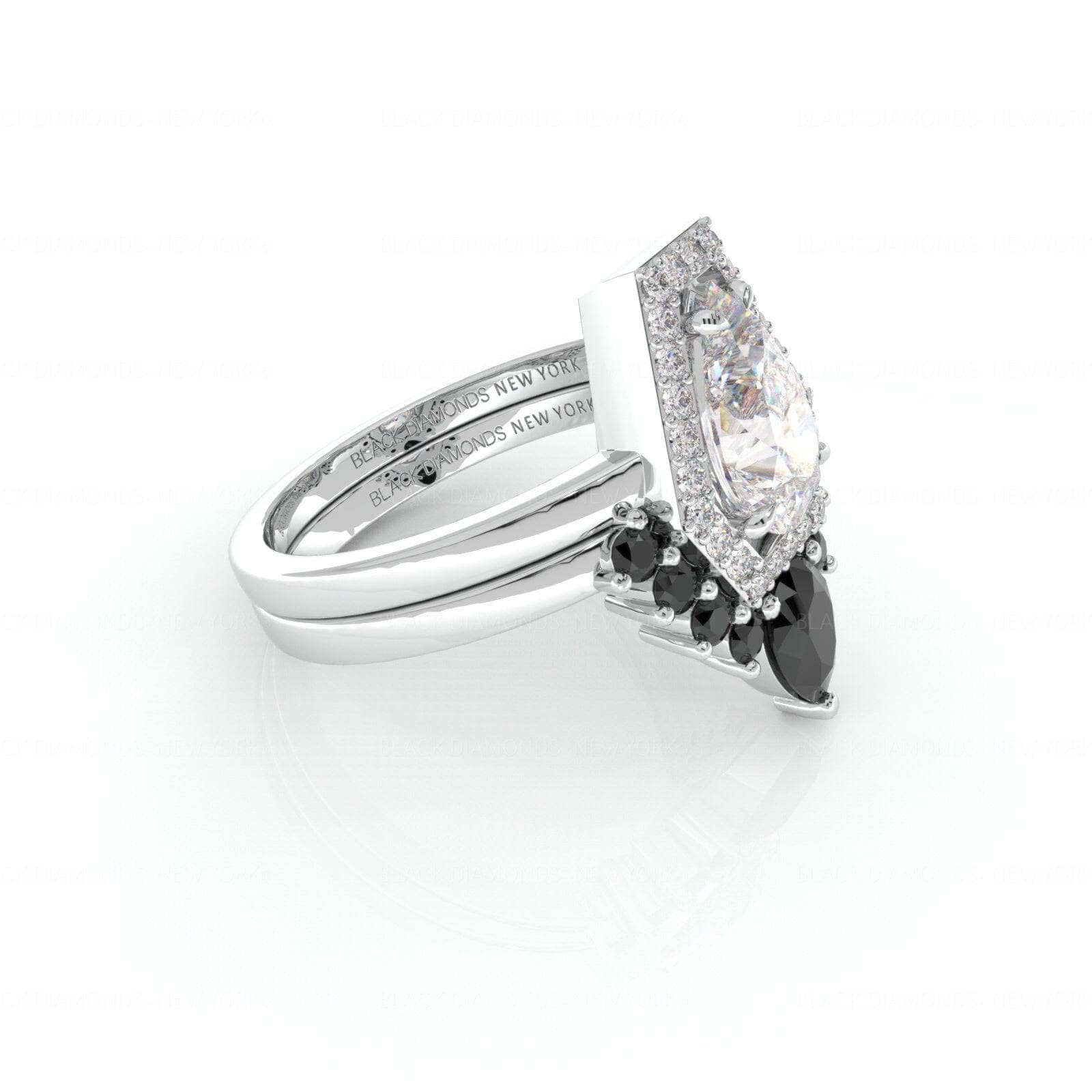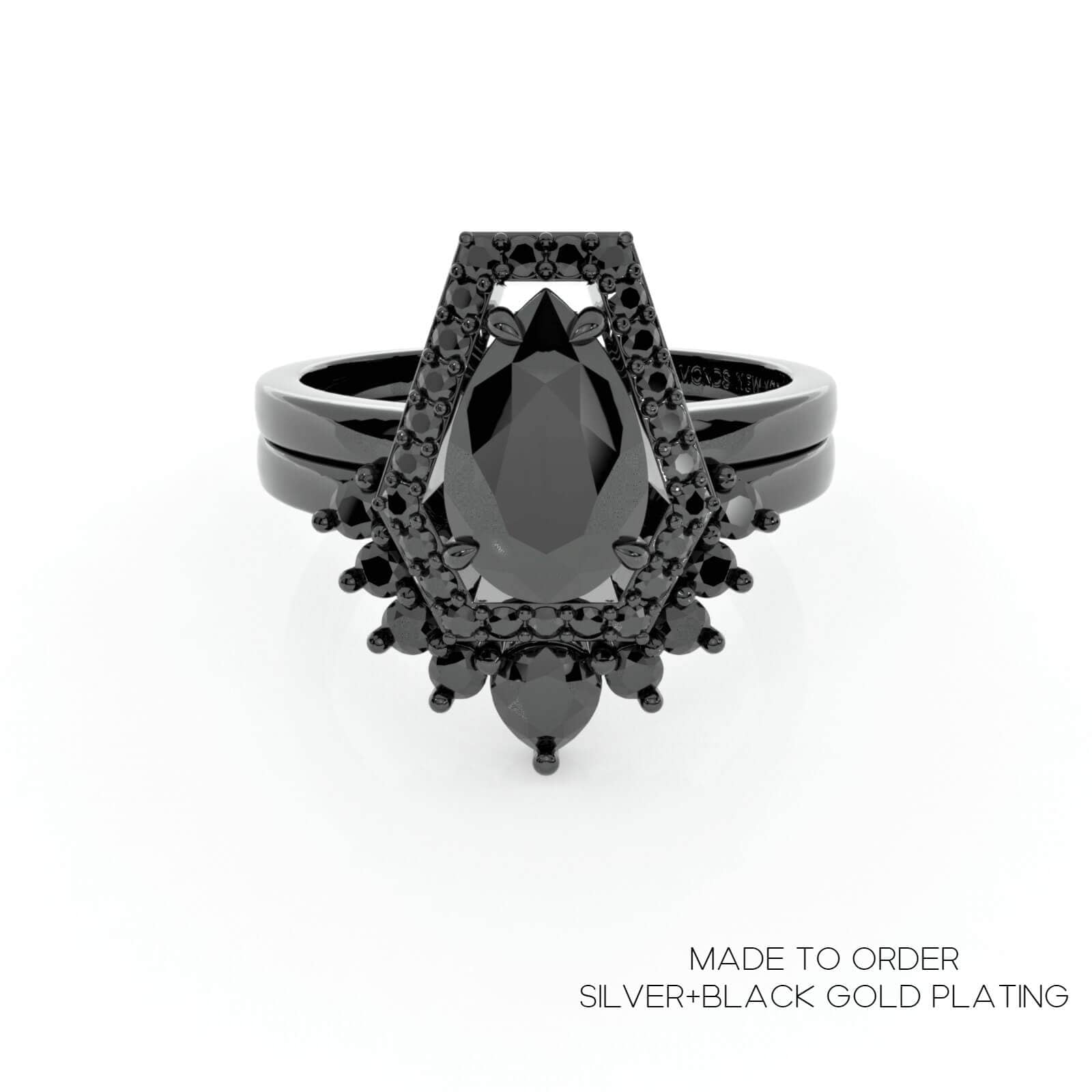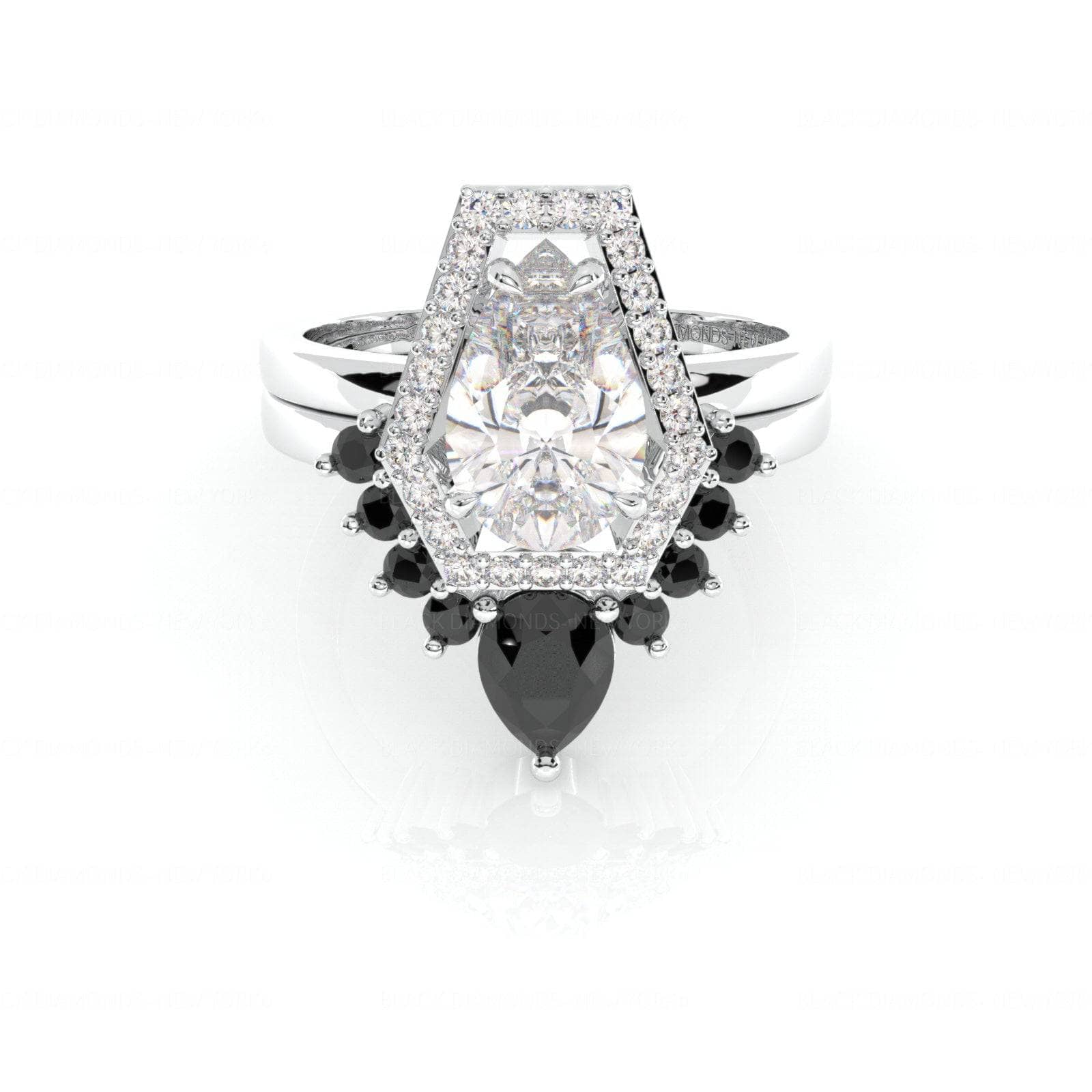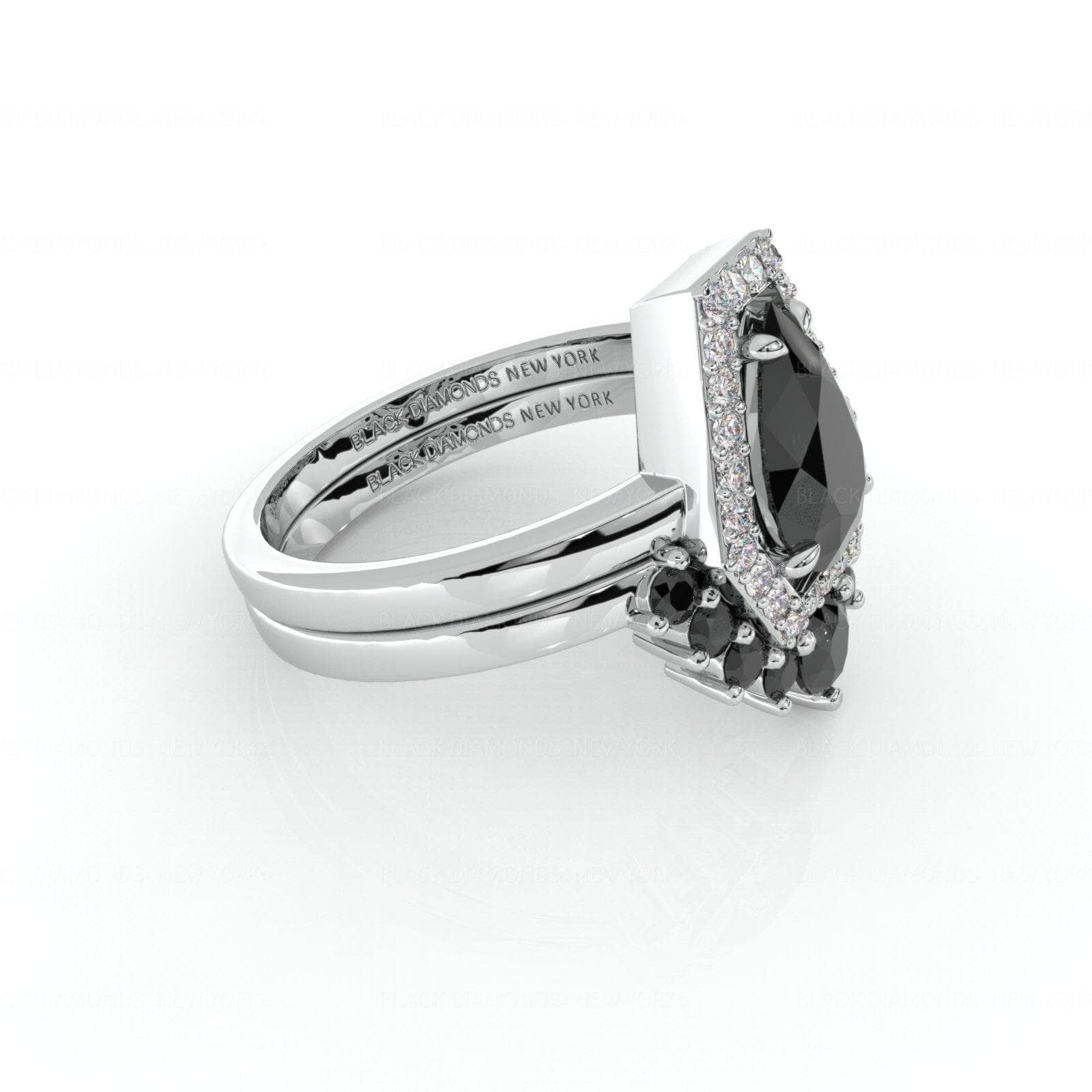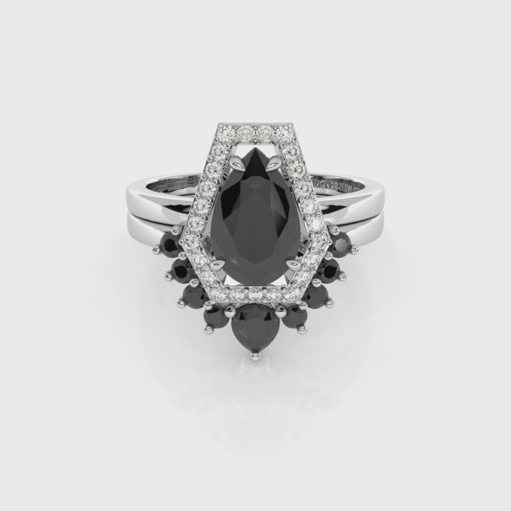 Faithfulness-1ct Black Pear Cut Diamond 14k White Gold Coffin Ring Set