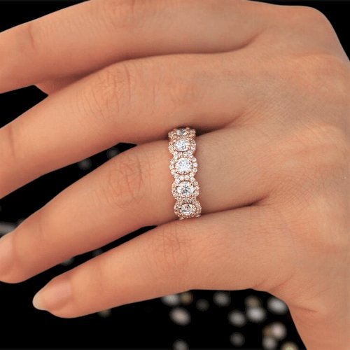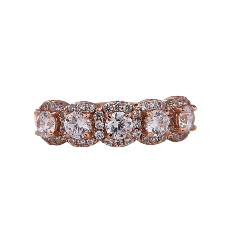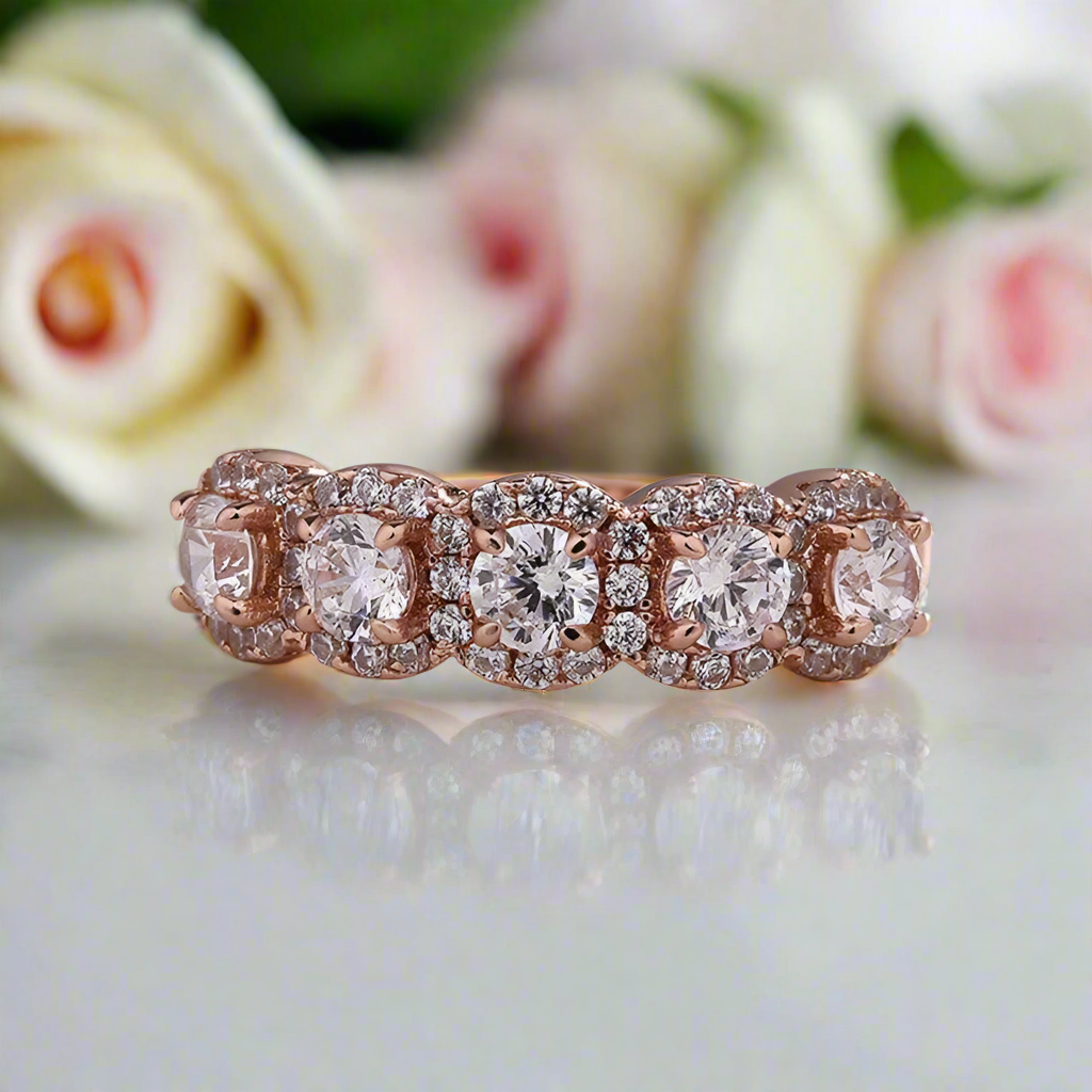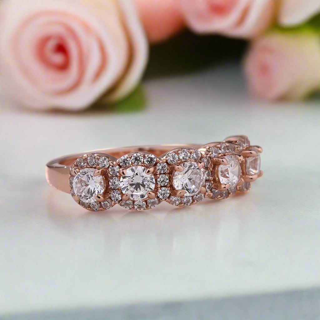 Fashion Rose Gold Halo Round Cut Wedding Band