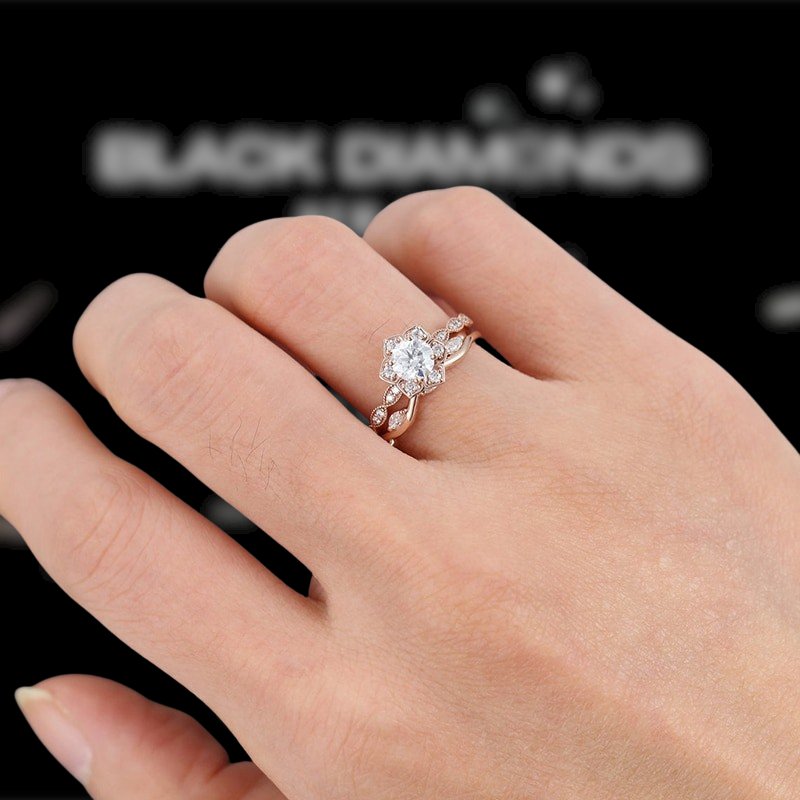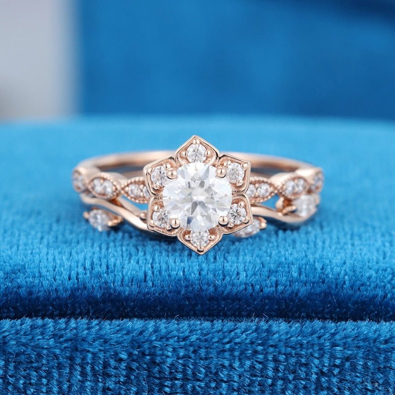 Fall in love with this stunning and gorgeous flower-inspired, 14k Rose Gold 0.5 Ct Round Cut Certified Moissanite Engagement Ring from Black Diamonds New York! This high quality ring is crafted from the most beautiful rose gold and comes with a dazzling round cut moissanite center stone. It is an affordable piece that is sure to make a statement! Show off your love with this beautiful and captivating ring.