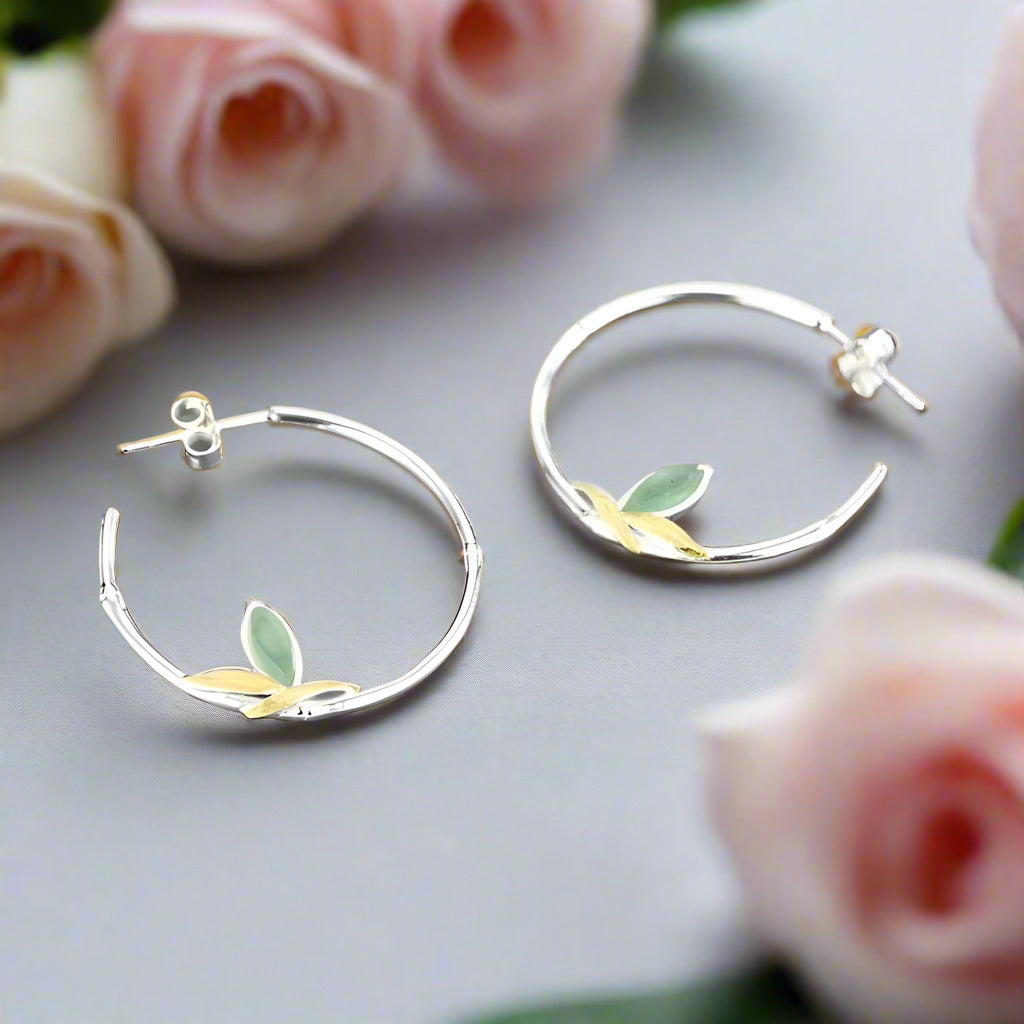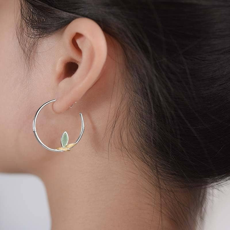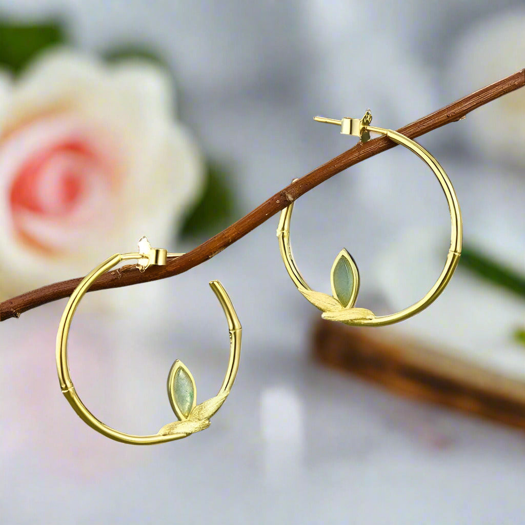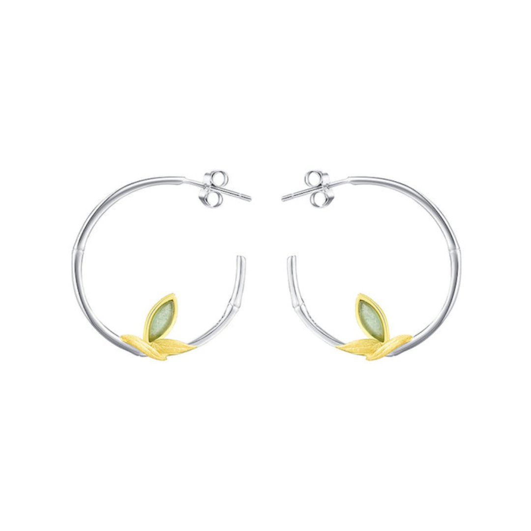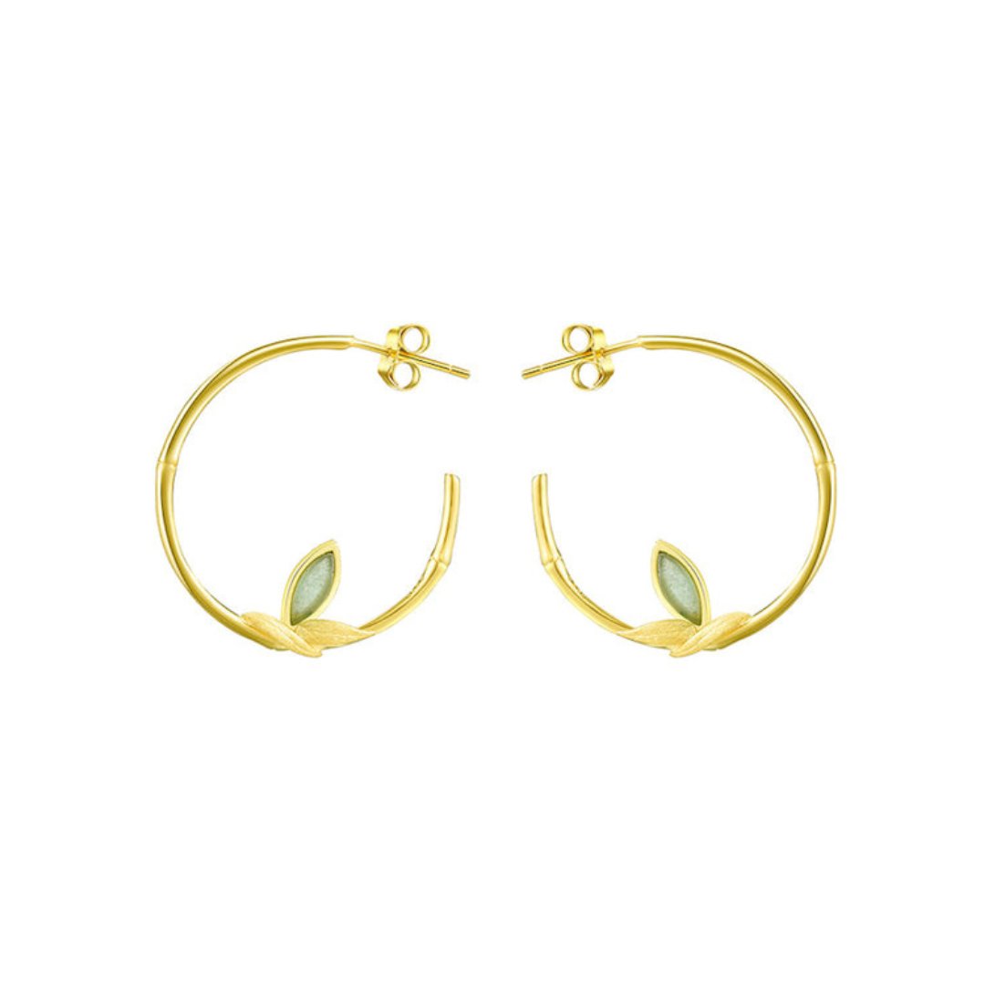 Fresh Bamboo Leaves Round Hoop Earrings