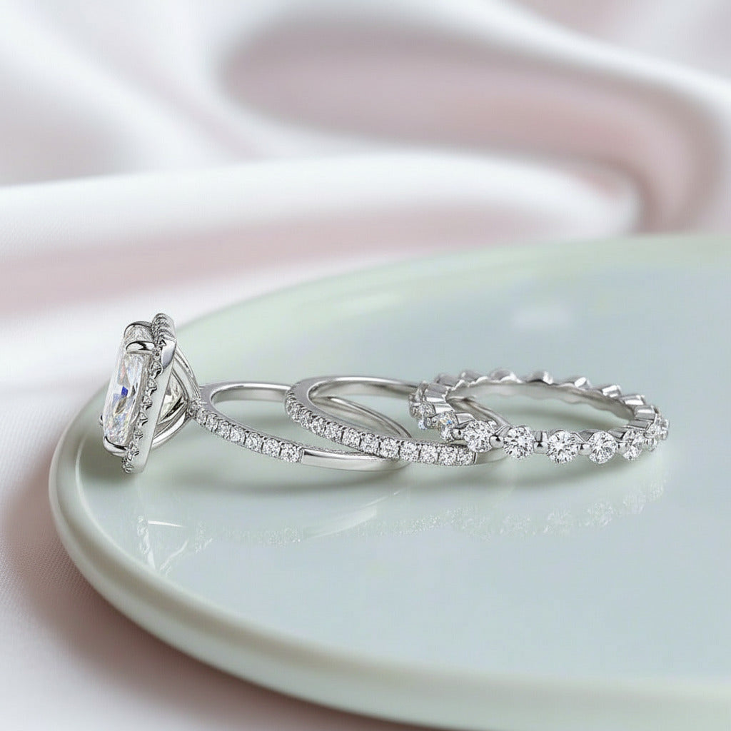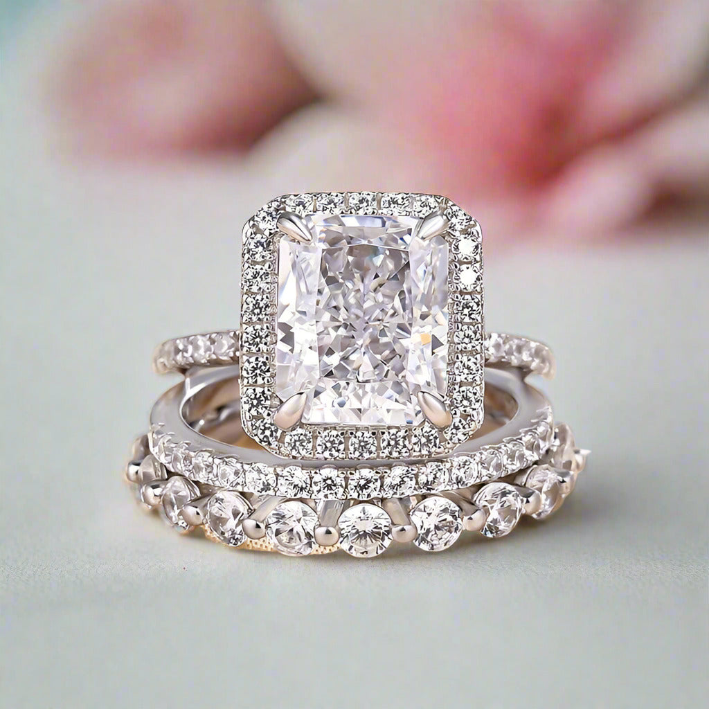 Gorgeous Halo Radiant Cut 3PC Wedding Ring Set