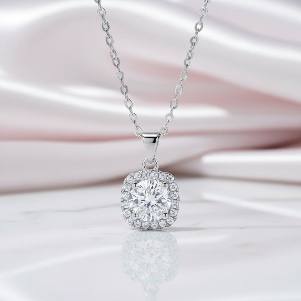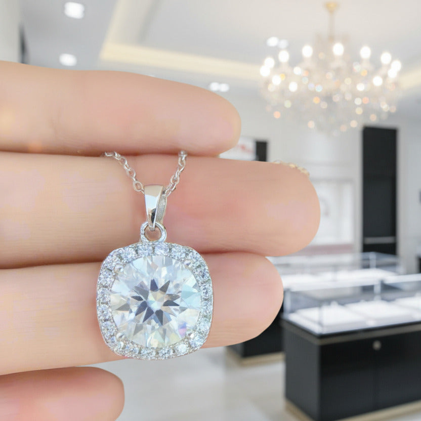 Inlaid 5.0 Ct Diamond Square Pendant Necklace