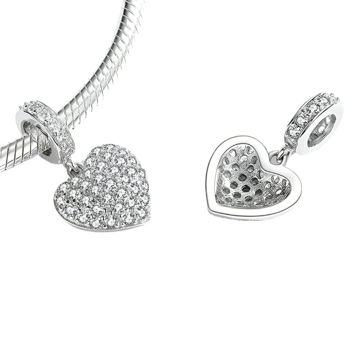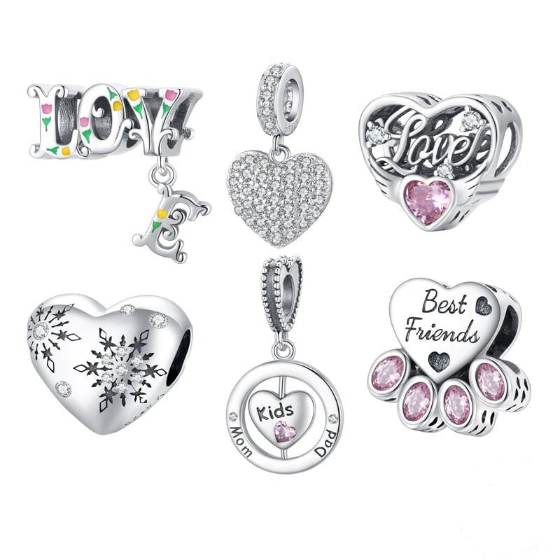 Love Wings & Snowflake Romantic Charms from Black Diamonds New York combine sterling silver and diamonds in a meaningful set. Featuring a heart, paw print, wings, and snowflake, these hypoallergenic charms elegantly symbolize love and connection for any special occasion.