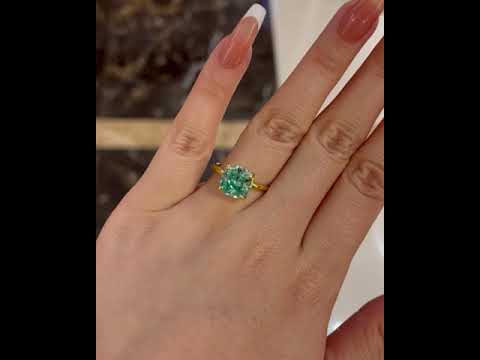 The Lovely 3.5 Carat Cushion Cut Paraiba Tourmaline Engagement Ring is a timeless piece, boasting 14k yellow gold and a stunningly rare green diamond. Its luminosity will never be overlooked or forgotten, and its affordability combined with quality design will make it an excellent choice for that special someone. A discreet halo further accentuates this elegant ring.