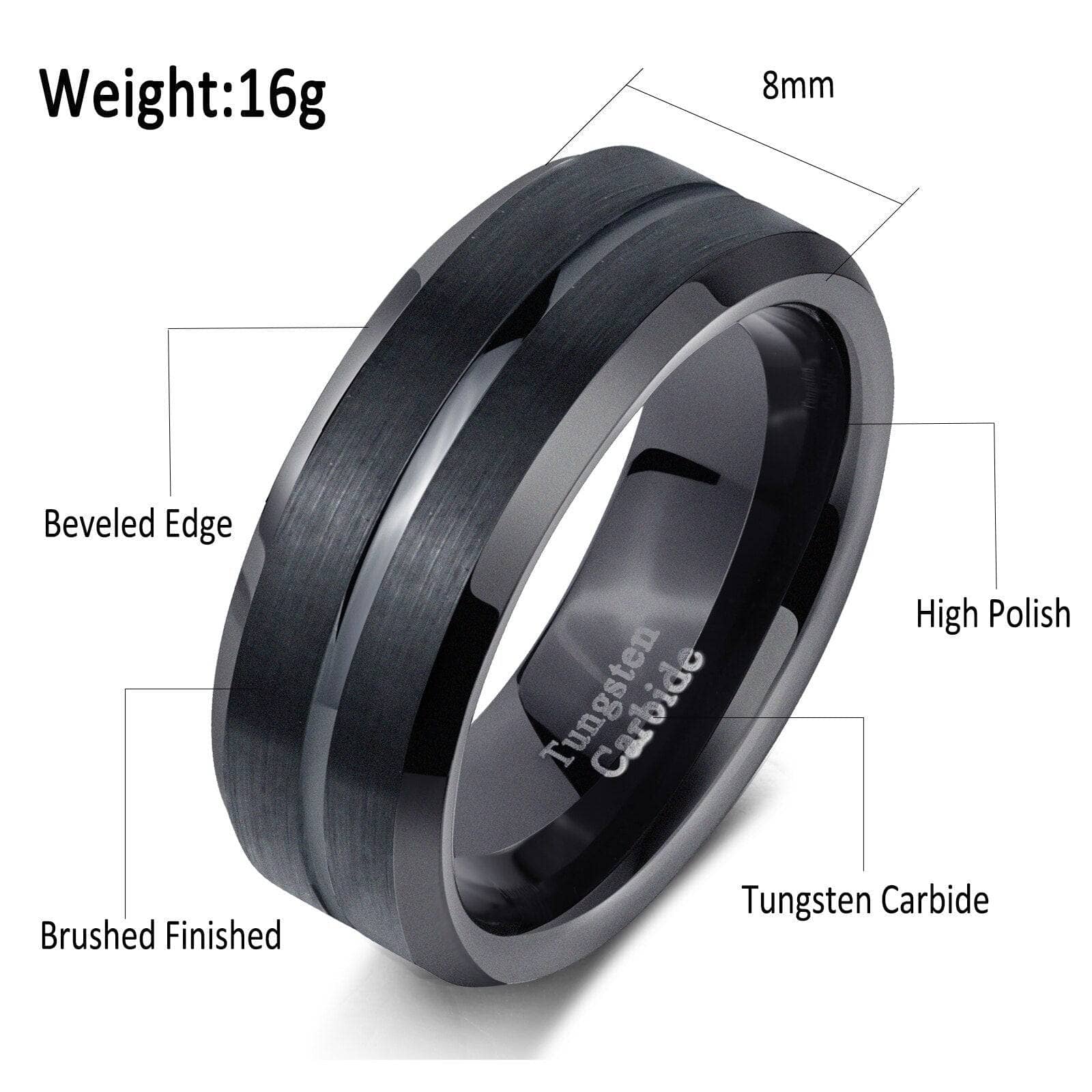 Experience lasting strength and style with this men's wedding band, crafted from black tungsten carbide and featuring an 8mm wide band for a confident, modern look.