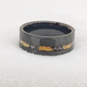 Meteorite Chip Gold Foil Inlay Hammer Tungsten Carbide Men's Ring