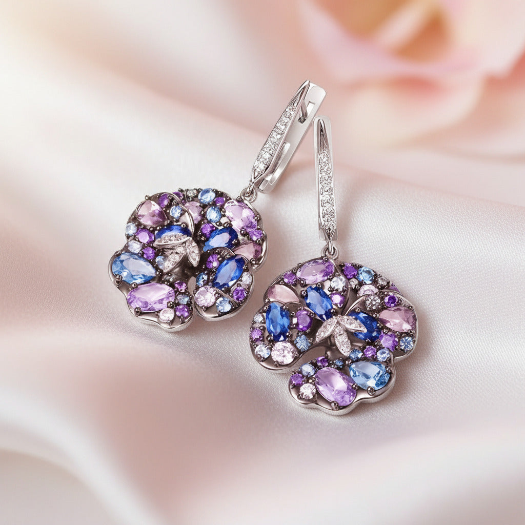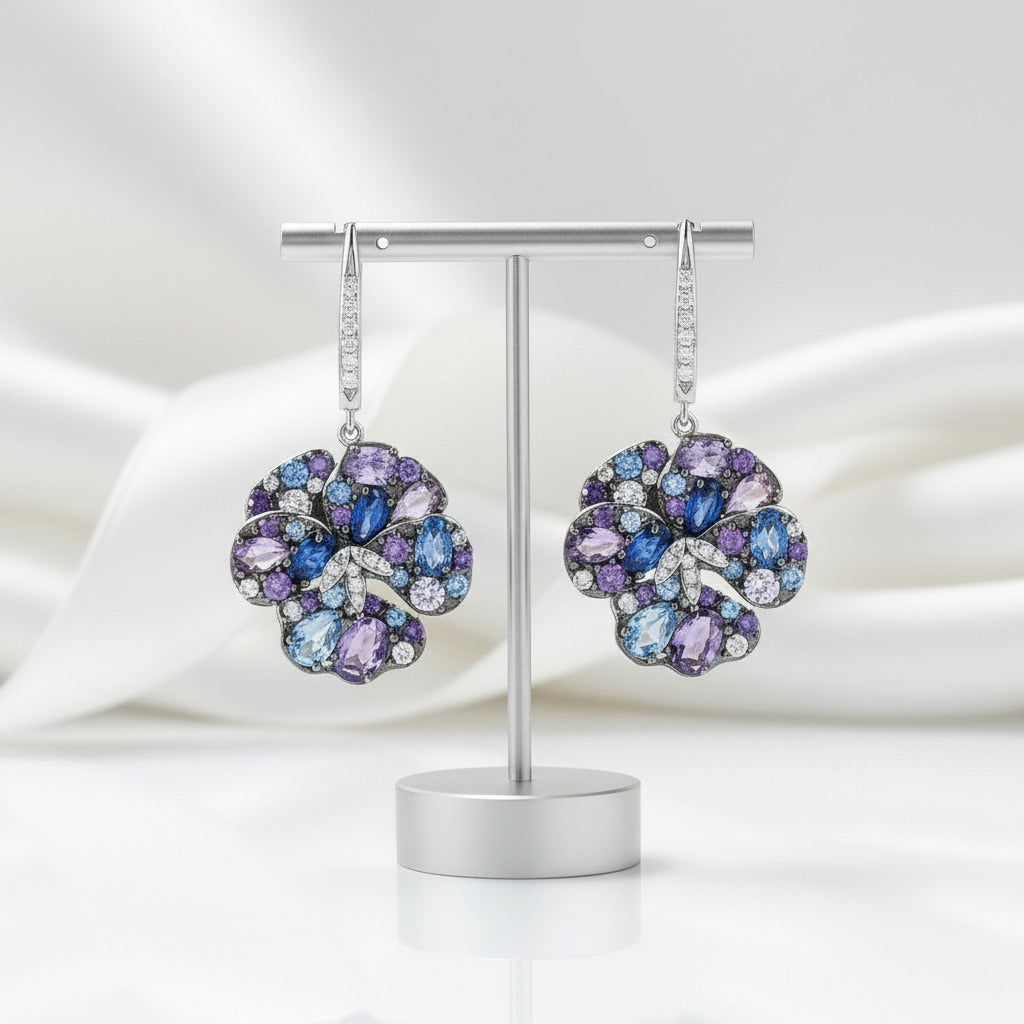 Multi-Gems Orchid Flower Drop Earrings