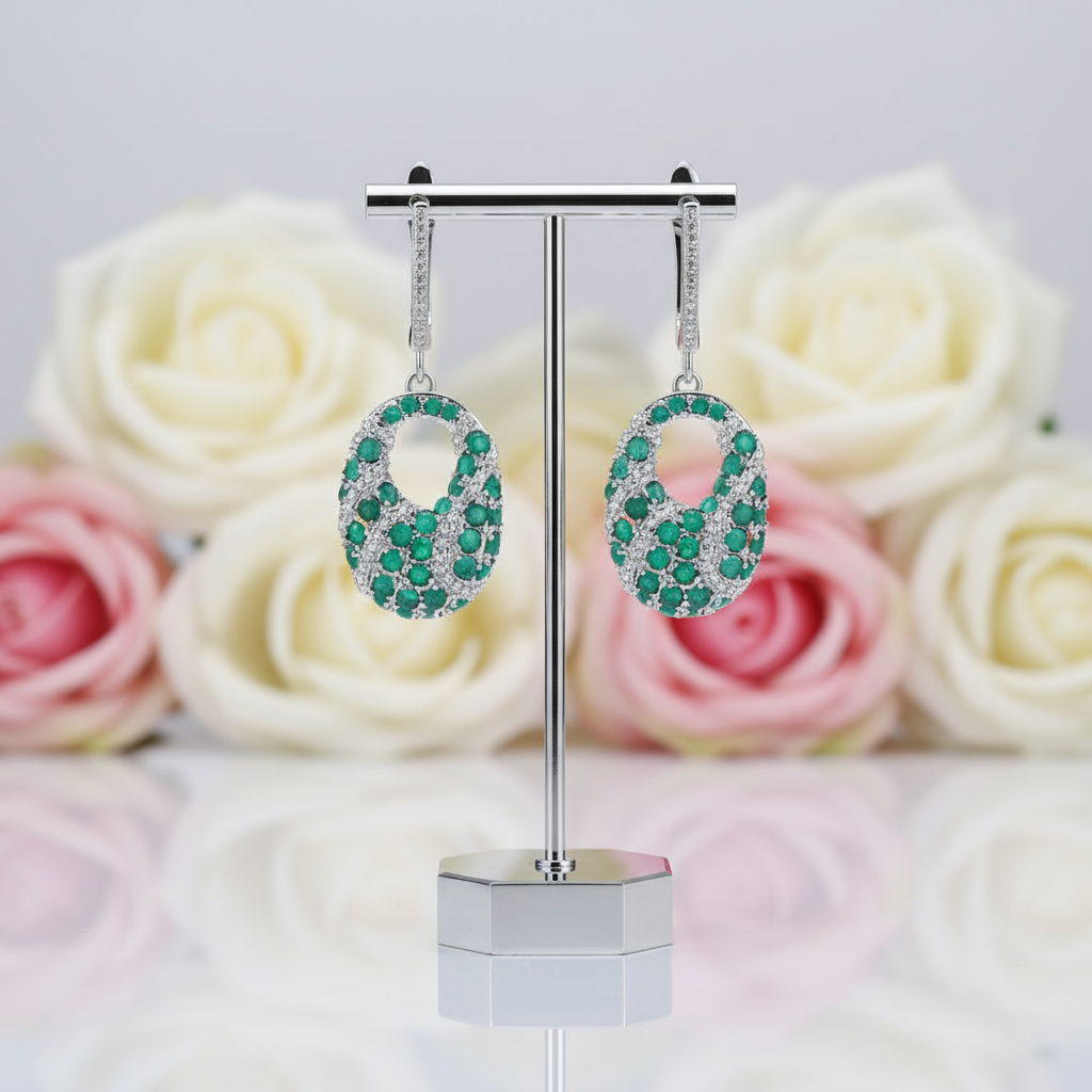 Natural Green Agate Gemstone Vintage Drop Earrings