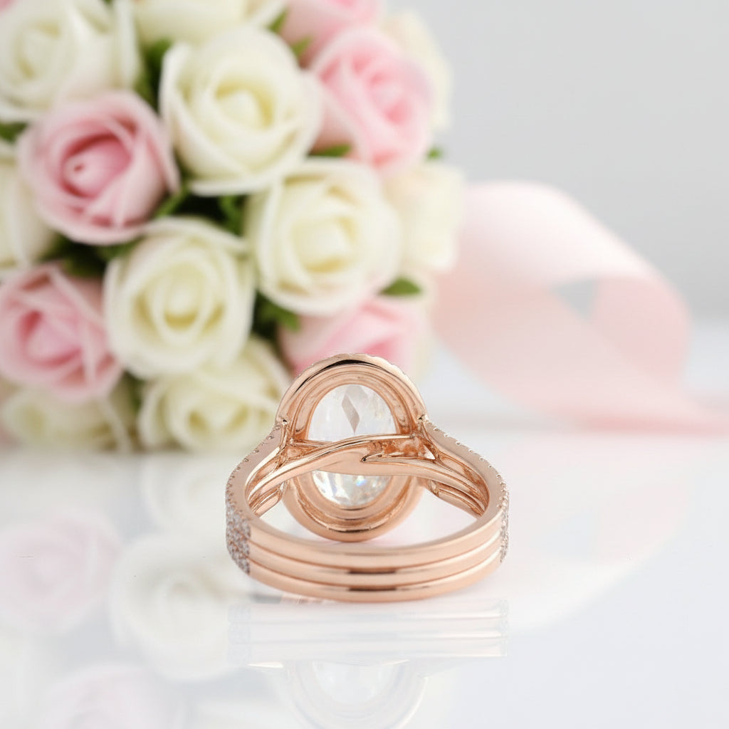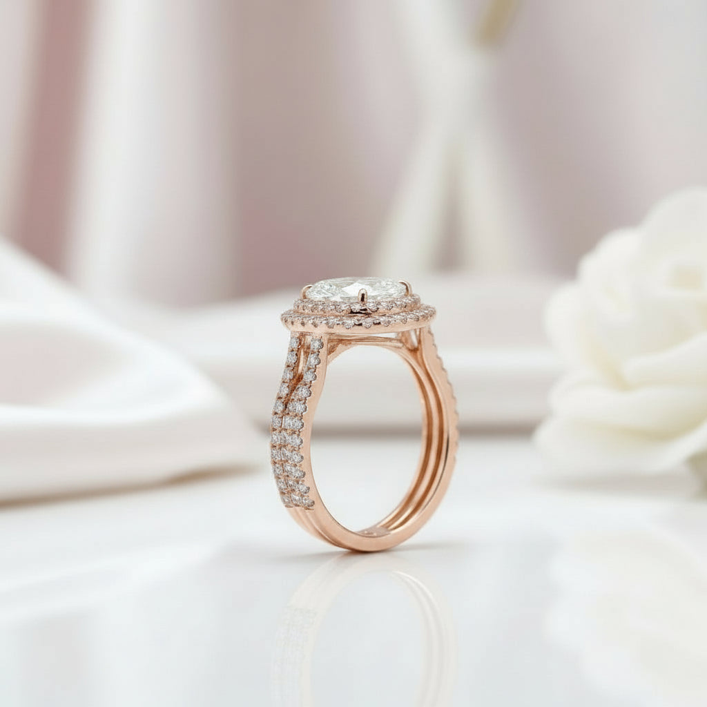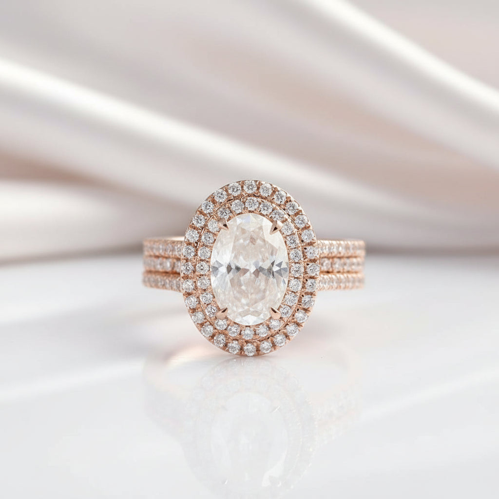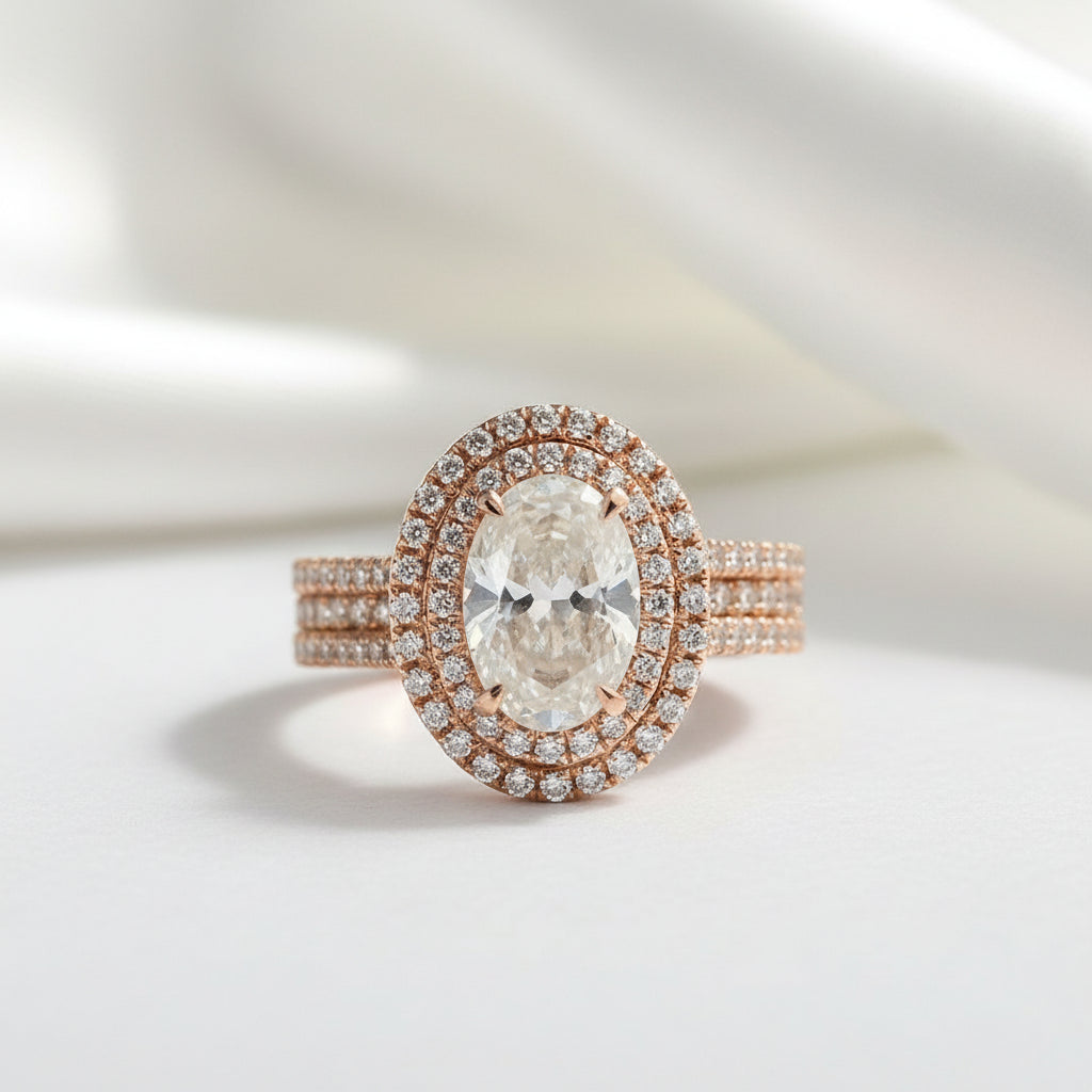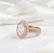 Oval Cut 14k Rose Gold Double Halo Engagement Ring