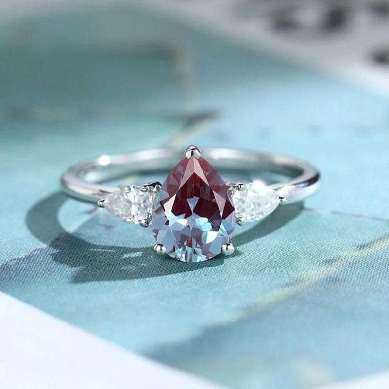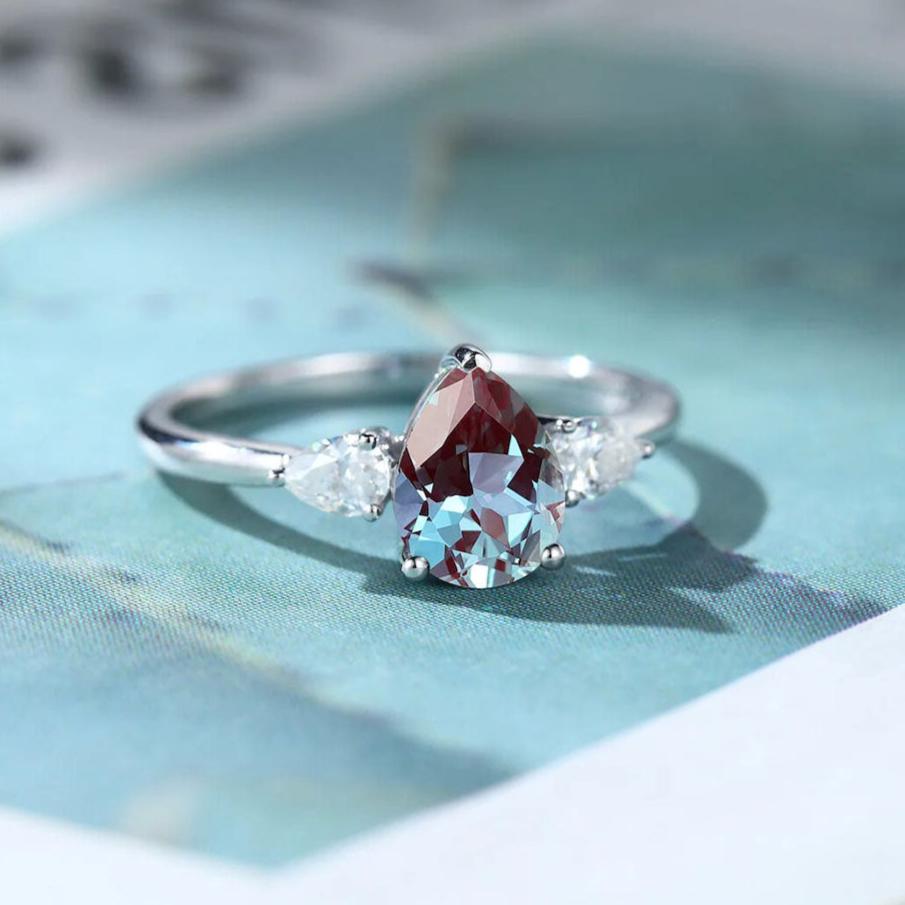 Pear Cut Alexandrite with Diamond Engagement Ring