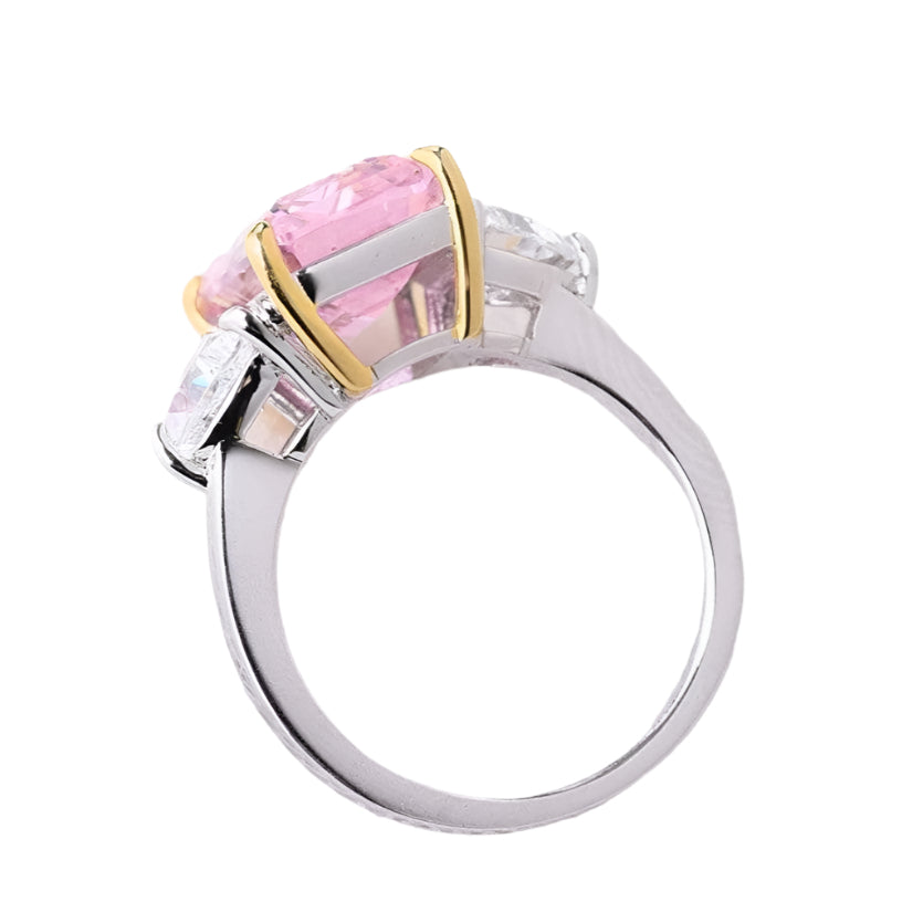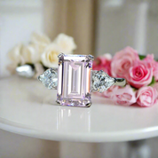 Pink Sapphire Emerald Cut Three Stone Engagement Ring