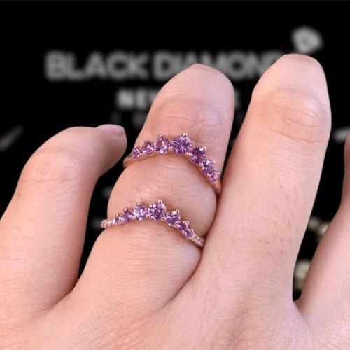 Delicate and radiant, this Rose Gold Amethyst Wedding Band features hand-set simulated diamonds that capture the brilliance of natural stones. Its sleek, vintage-inspired design makes it perfect as a wedding ring, promise ring, engagement band, or stacking ring for daily wear.