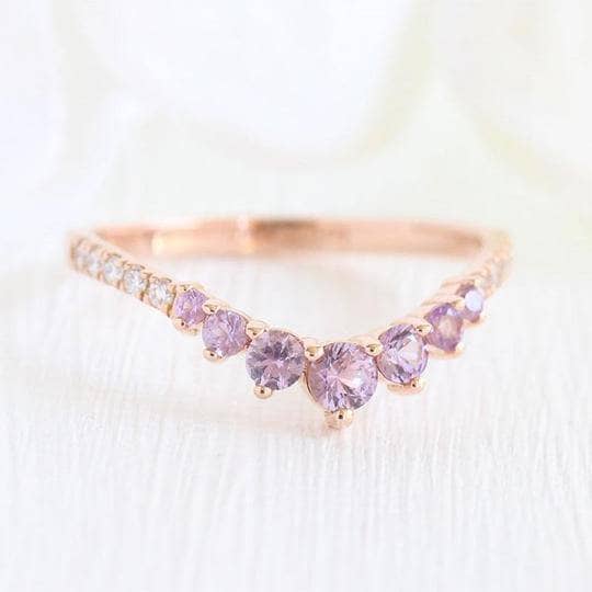 Rose Gold Amethyst Purple Thin Stacking Wedding Band