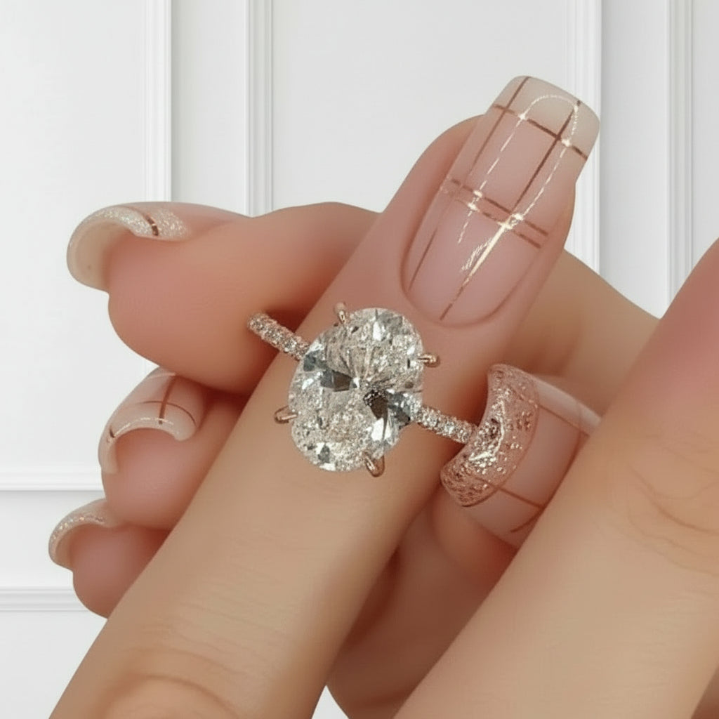 Beautiful rose gold oval engagement ring with hand-cut simulated diamonds that sparkle brilliantly without the natural diamond price tag. Expertly crafted for durability and everyday wear, this timeless piece suits engagements, weddings, anniversaries, and special occasions. Protected by a one-year warranty and 30-day guarantee.
