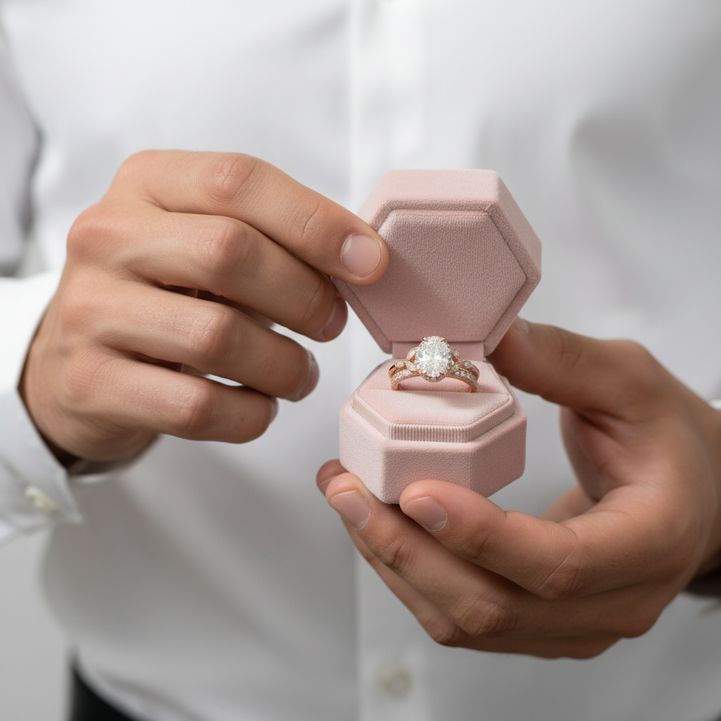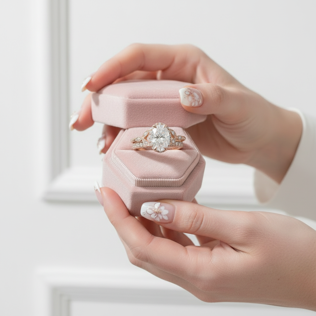 A beautifully crafted rose gold solitaire with an oval-cut diamond. Perfect for engagements, weddings, anniversaries, or any special occasion.