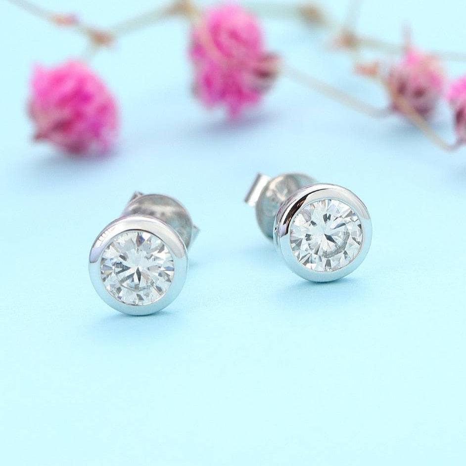 Solid White Gold 5mm Diamond Stud Bubble Earrings