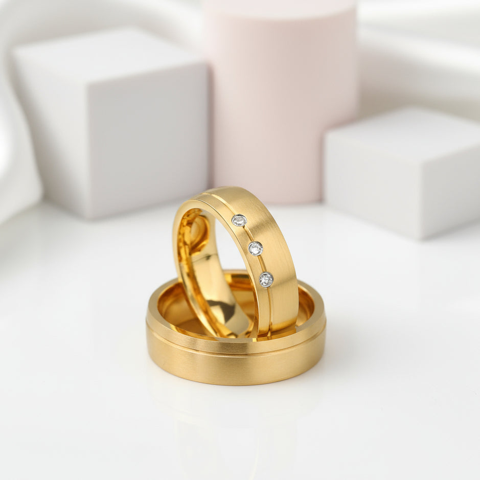 Elevate your love story with this stunning stainless steel ring band, finished in luxurious gold plating. Designed as a matching set for couples, these rings deliver timeless elegance without the premium price tag. Durable, affordable, and beautifully crafted, they're the perfect symbol of commitment that won't compromise your wallet.