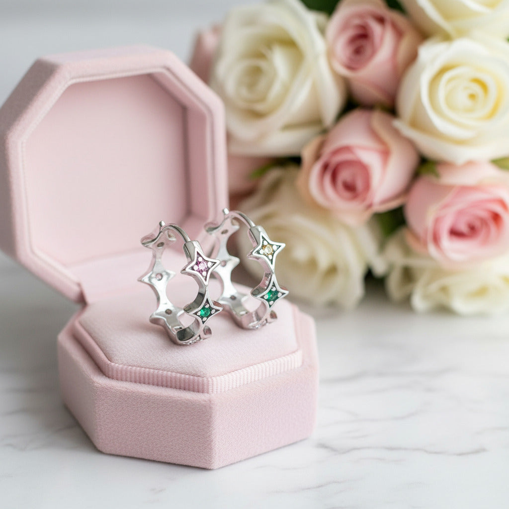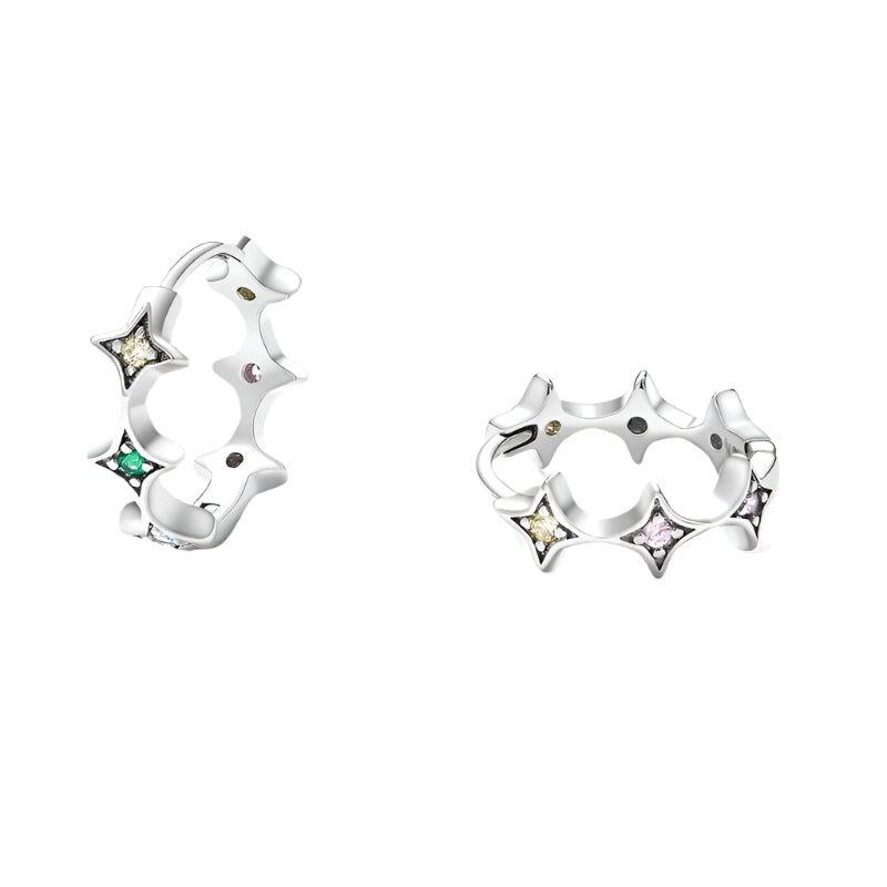 Star Rainbow Diamond Hoop Earrings
