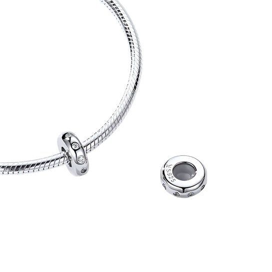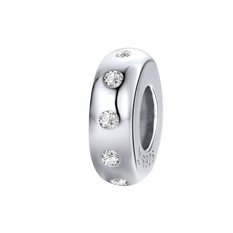 Elevate your jewelry with these Stylish Spacer Stopper Charm Beads. Made from 92.5% pure silver and hypoallergenic metals, they offer durability and comfort. Featuring elegant diamond accents, they add a refined sparkle to any collection.
