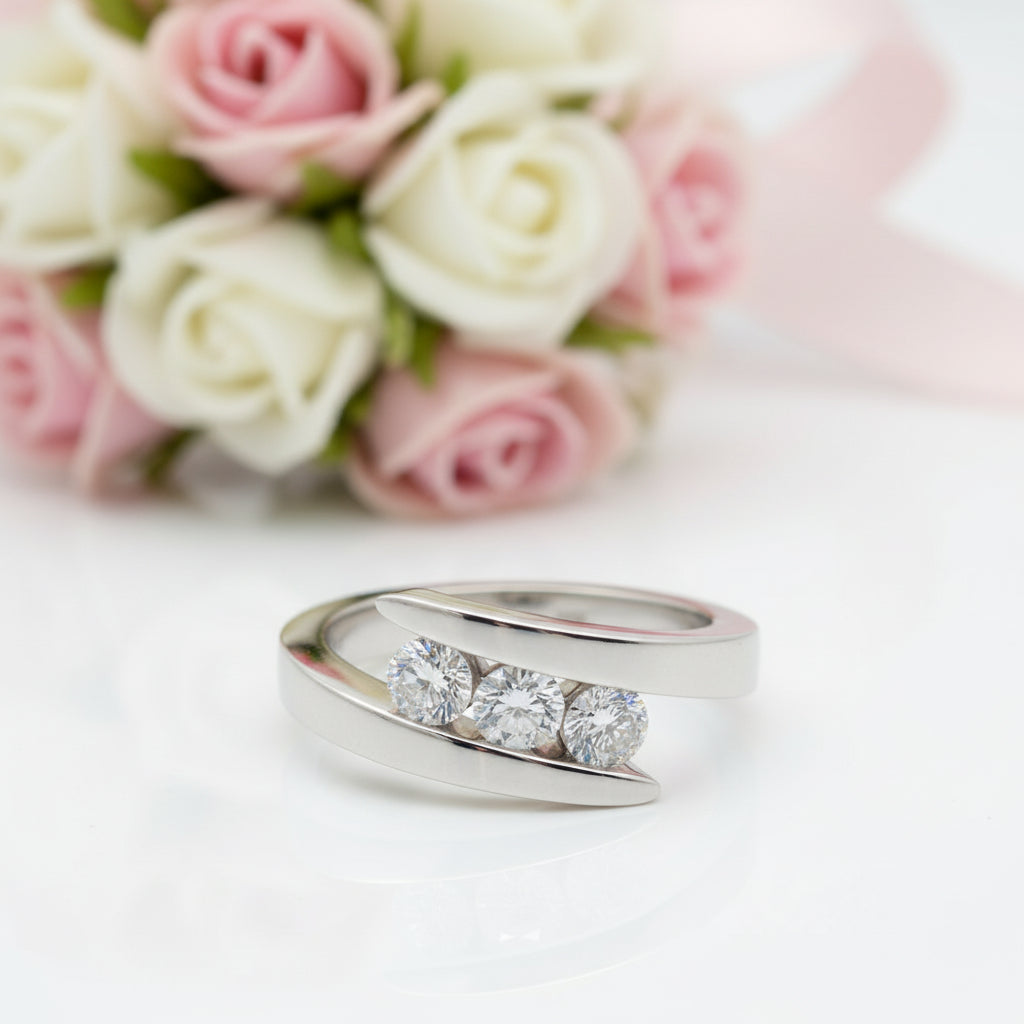 A handcrafted three-stone engagement ring featuring 4mm diamonds with exceptional brilliance. The classic design symbolizes past, present, and future, crafted from premium materials built to last.