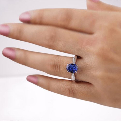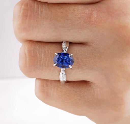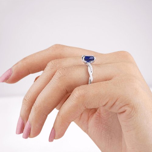 Twist Blue Sapphire Oval Cut Simulated Diamond Engagement Ring